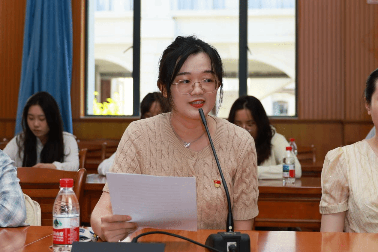 新发展党员代表洪倩文表示,成为共产党员不仅是一份崇高的荣誉,更是一份沉甸甸的责任与使命。她将以党员身份为新的起点,矢志不渝地坚定理想信念,持续深化理论学习,在实践中不断锤炼党性;时刻牢记全心全意为人民服务的根本宗旨,将奉献精神内化于心、外化于行,积极服务师生、服务社会,在点滴实践中践行初心;自觉将个人成长融入国家发展大局,深刻理解并赓续党的光荣传统和优良作风,从百年党史中汲取智慧力量,勇担时代赋予青年的重任。