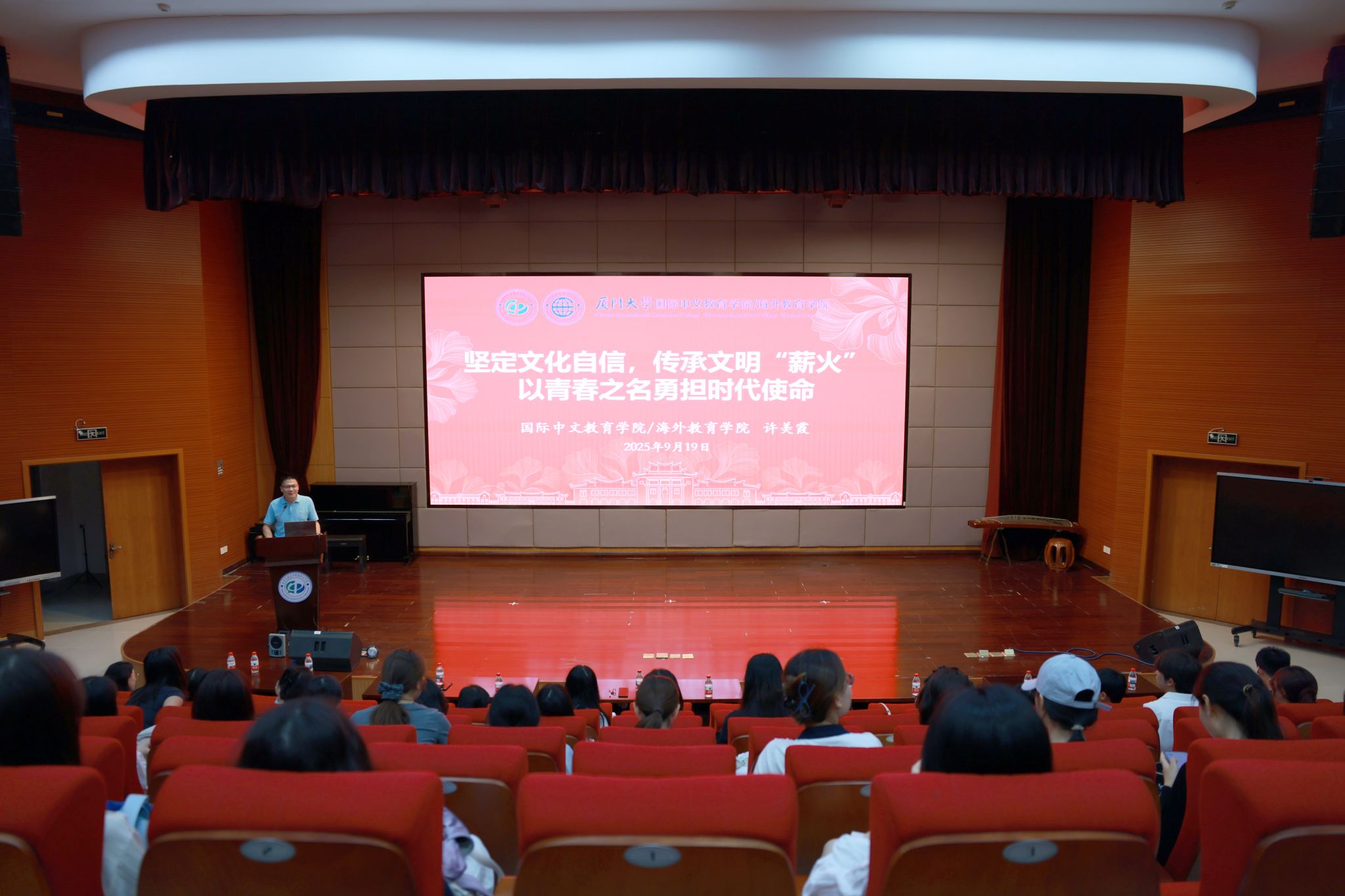 为进一步加强学生思想政治教育,推动新生全面了解学校与学院的历史沿革与精神传承,引导新生树立崇高理想信念,明确学业规划与成长目标,9月19日上午,我院党委书记许美霞在翔安校区坤銮楼B102多功能厅为2025级研究生讲授以“坚定文化自信,传承文明薪火,以青春之名勇担时代使命”为主题的“开学第一课”。讲座由学院党委副书记李启忠主持。