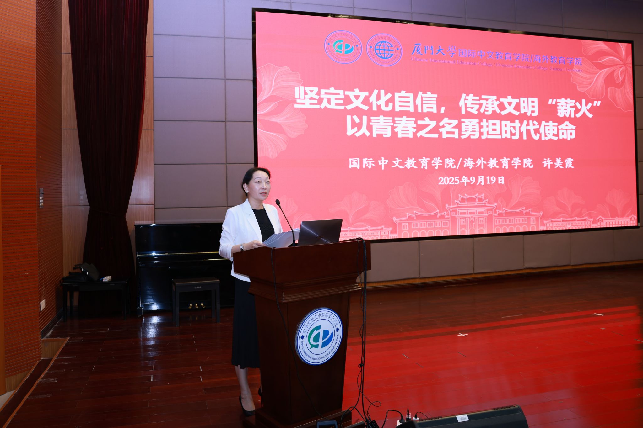 2024年11月国家主席习近平在致2024世界中文大会贺信中强调,国际中文教育“彰显了开放包容的魅力,展现了互学互鉴的价值,体现着合作共赢的精神,凝结着中外人士共同的心血”,国际中文教育传播中华文化责无旁贷,这是一个难得的机遇,许美霞勉励同学们要:立鸿鹄之志,做新时代的奋进者;守学术正道,成潜心治学的研究者;传文明薪火,当交流互鉴的青春使者;观世界大势,做人类命运共同体的践行者。希望同学们能够成为勇立潮头的先锋队伍,坚定不移听党话、跟党走,勇敢肩负时代赋予的重任,用实际行动诠释厦大人的时代风采,为推动国际中文教育高质量发展、促进中华优秀传统文化传播贡献力量。