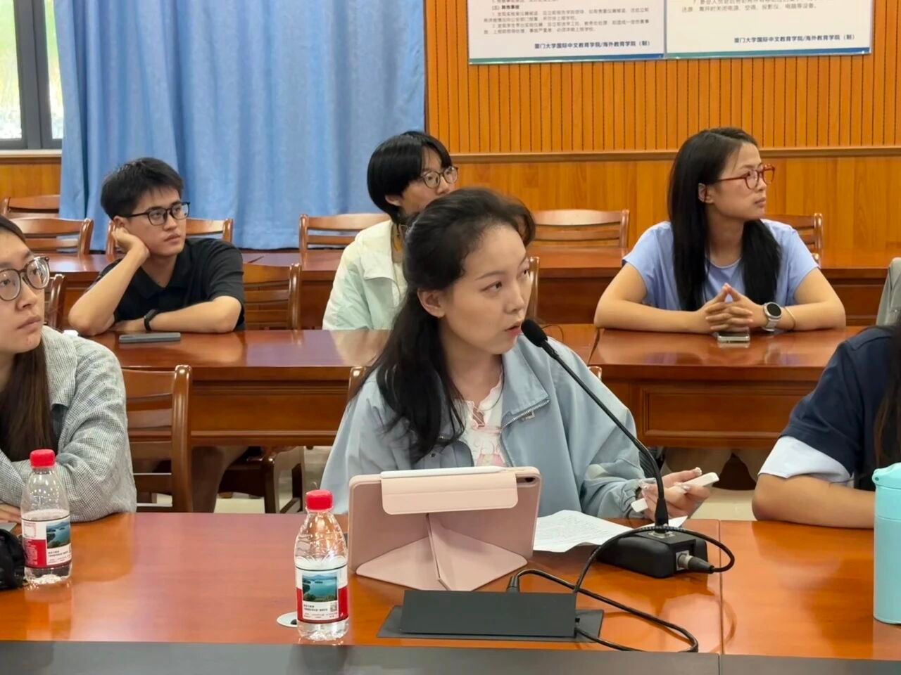 为拓展学生国际视野,加深对国际中文教育与跨文化实践的理解,搭建经验共享平台,助力学子未来在国际交流中发挥专业优势、讲好中国故事。10月15日下午,我院在坤銮楼C104会议室举办“颉颃计划”及“瀚宇之花”海外实践经验分享会。学院党委书记许美霞,校团委副书记兼翔安校区团工委书记郑音,学院副院长潘超青、团委书记白沚凡,五位海外社会实践故事分享人、“颉颃计划”海外社会实践队员代表,学院薪火文化先锋党支部党员、各党支部积极分子代表参加。会议由陈若影同学主持。