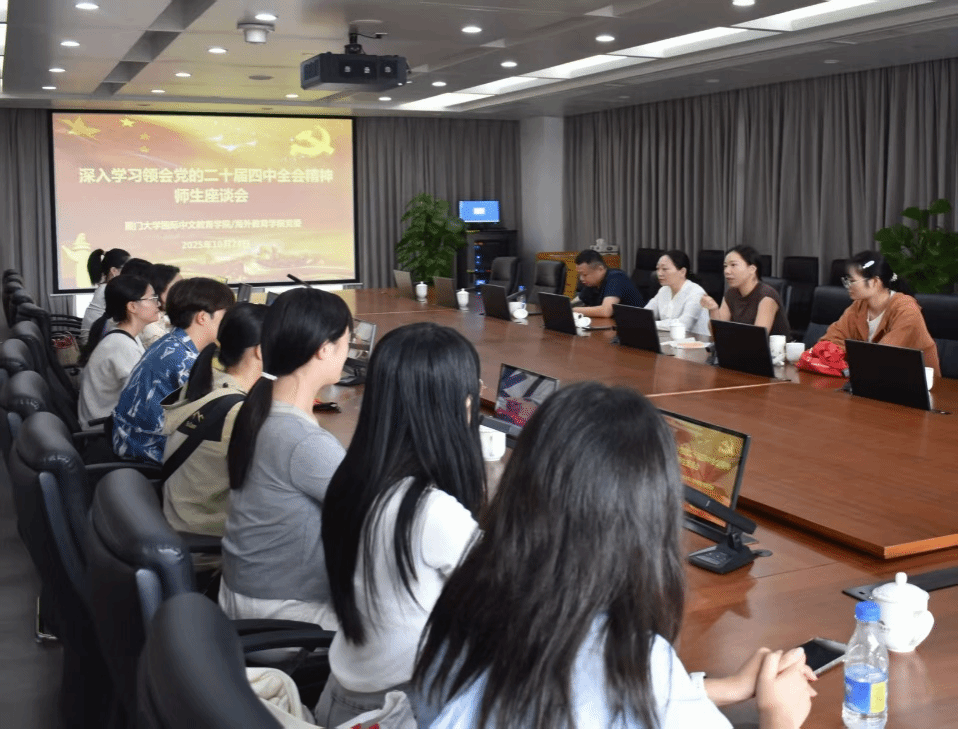 期间,学院党委组织开展“深入学习贯彻党的二十届四中全会精神”师生座谈会,聚焦全会提出的“高质量共建‘一带一路’”“扎实推进文化强国建设”等重大部署开展研讨。学院行政党支部和薪火文化先锋党支部的师生们参加此座谈会,并坚决表示要以语言为媒,以文化为桥,为“提升中华文明传播力影响力”贡献国际中文力量,为推动构建人类命运共同体作出积极贡献。在日常工作中,将弘扬中华优秀传统文化进一步融入国际学生教学实践,通过共建孔子学院、海外国际中文课堂等渠道,让海外学习者在掌握中文知识的同时,了解中华文化的深厚底蕴。