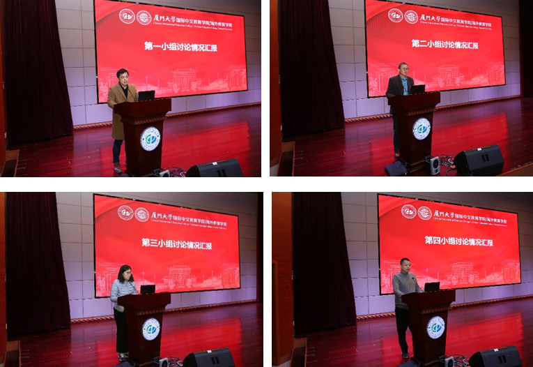 随后,与会人员合影留念。参会人员分为四个小组对工作报告进行了深入讨论。大家各抒己见,建言献策,共谋发展,现场气氛十分热烈。讨论后,各组组长洪镔、刘强、林琳、洪伟几位老师代表各组依次上台发言。