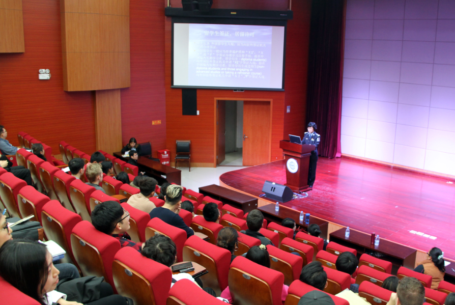 厦门市出入境管理局陈小莹警官首先为新生们介绍了我国的签证政策和办理签证、居留证的流程,列出了一些常见问题的解决方案;曾菁警官重申并补充了一些有关办理留学签证的政策和流程,介绍了我国管理留学生的相关法律法规,列出了一些法律禁止的行为。校学生处海外学生事务科柯秋梦老师为新生们介绍了厦门大学的概况,海外学生事务科的职能,并且带领新生们学习了学校管理留学生的规章制度。最后,海外教育学院的严欣怡老师介绍了学院的概况和学院负责留学生管理的工作团队,并且带领新生们学习了学院管理留学生的规章制度,还着重强调了安全问题。四名工作人员的讲解解答了新生们心中的许多疑惑,也让他们了解了相关的法律法规和规章制度,明白了应该做和禁止做的事情,帮助他们系好了来中国学习生活的“第一粒扣子”,为今后的学习生活打下良好基础。