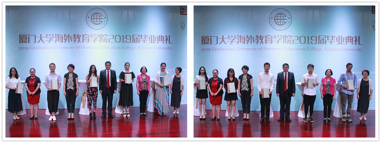 典礼最后,伴随着激昂的音乐声,2019届毕业生依次上台,由学院领导一一为他们颁发毕业寄语并合影留念。典礼在庄重的校歌中落幕。