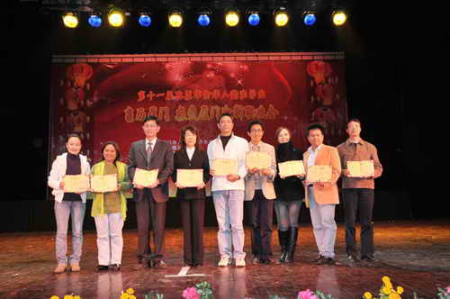 一、由厦门市人民政府侨务办公室主办,厦门鹭风报社承办的“第十一届在厦华侨华人及港澳学生迎新联欢会”于12月6日在莲花影剧院隆重举行。这是有六所院校参加的一年一次的展示华侨华人港澳学生艺术才华的盛会。黄建军副院长代表我校国际处港澳台办与我院率79名学生参加了大会。我院留学生表演的由林璐老师创作及编排的台湾高山族舞蹈《娜奴湾之情》和新疆民族舞蹈《掀起你的盖头来》在晚会上掀起高潮,分别荣获晚会的最高奖“最佳人气奖”和“最佳台风奖”。我院学生表演的对唱《美丽的神话》荣获优胜奖,作文参赛亦获三等奖。
