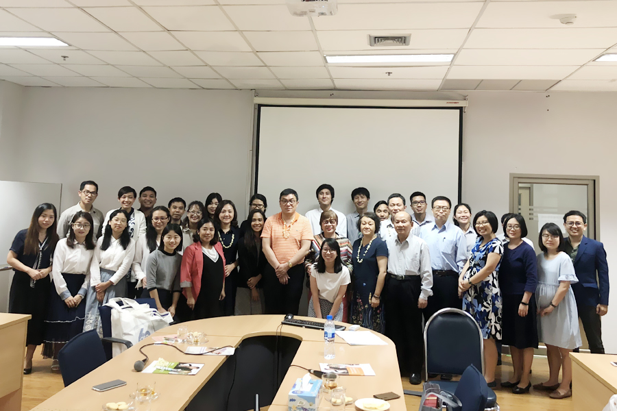 图:我院陶涛院长在泰国皇太后大学孔子学院探望厦大海院学生志愿者