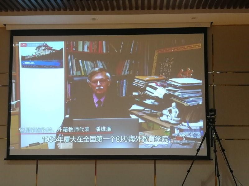 (海外教育学院院友、管理学院教授、外籍教师代表潘威廉在大会上发言)