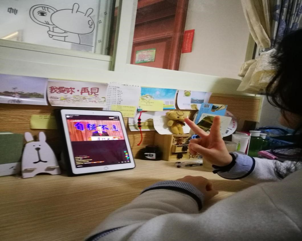 ——17级汉语言本科生蒙沐阳(斯里兰卡籍,在学院观看)