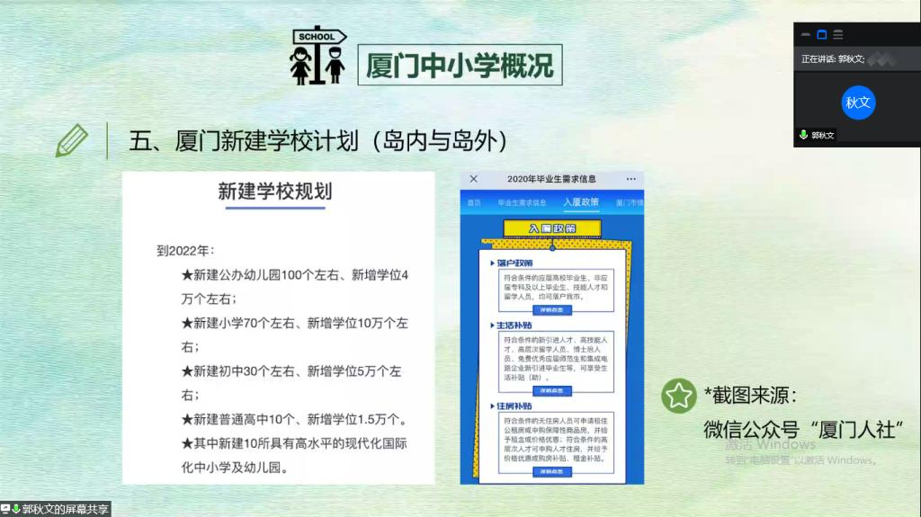 第二位分享的郭秋文同学成功被聘为厦门市科技中学的编内语文教师。郭秋文同学先是对个人情况进行了简介,在此她还提出了一些制作、投递简历的注意事项;紧接着,她介绍了厦门中小学情况、具体工作内容以及薪资待遇。接着就是最扣人心弦的招聘环节的分享,她从抢占先机、现场面谈、笔试与面试、签订三方协议四个步骤来展开论述。她指出,现场面谈是决定性环节,至关重要。最后她建议同学们多参加一些荣誉评选,积累教学经验,并及时关注信息,做好心理准备,这些都会成为通往成功的基石。