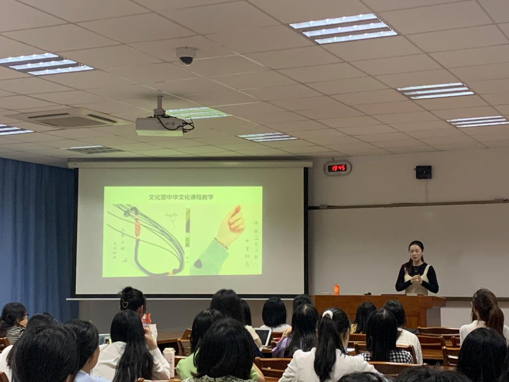 王思美、赵萱萱、魏然学姐首先向我们分享了她们作为海外汉语志愿者的经历。王思美学姐回忆她在泰国汉语教学的丰富经历,为大家介绍了泰国的孔院情况、主要的工作任务以及难忘的瞬间。王思美学姐提到泰国皇太后大学的建筑仿照苏州园林的风格,极具中国特色,同时近些年中文教学规模不断扩大,在武汉抗疫期间,学校还举办了许多支持中国、支持武汉的活动,让身处异乡的志愿者们倍感温暖。