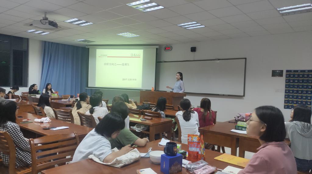首先进行的是经验分享会,本次分享会邀请到我院王思美、魏然、赵萱萱、付志晨、钟烨、吴浩楠、李长浩、戴萌等几位学长学姐,就志愿者派出、求职就业、院内实习、论文写作、读博深造等几个方面进行经验交流分享。