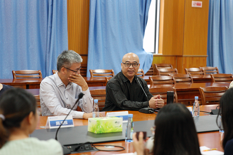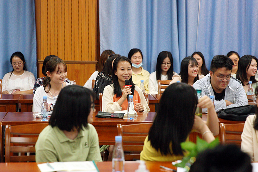 在导师介绍和师生交流环节中,导师们从自己的学科背景、研究方向、专业兴趣等方面分别进行了介绍,并提出了对研究生新生的要求和期待。新生们就自己在导师选择、导师研究方向的侧重点以及将来的答辩事宜等方面提出了问题,导师们也对学生的问题一一进行了解答。孟繁杰副教授对选导师的程序再次做出说明,常大群教授强调研究生应当开阔自己的视野,增加与导师的沟通交流,不断提升自己的思想水平。(文:张紫荆)