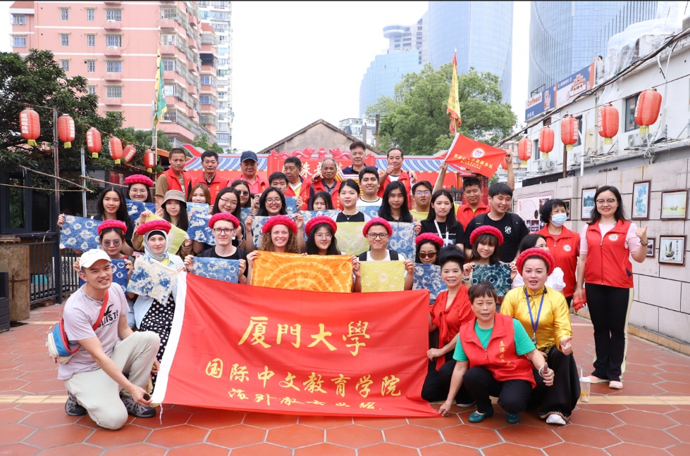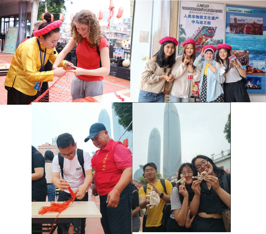在第二站沙坡尾文化之旅中,同学们先后感受了避风坞、接官亭石牌坊的历史,并参观了翁朝言故居和南薰楼。在厦港海洋文化展示厅中,同学们领略了海洋文化的展出窗口,并在这个拥有着200多件展品、一艘10米多长的观赏王船的展示厅内,体验了古法扎染、盘疍民头饰,结编织网等渔民文化项目。经过志愿者老师的精心示范和耐心讲解,同学们对厦港不同时代的故事产生了浓厚兴趣,并表示想要更深入地了解厦门和厦门大学及其周边历史。