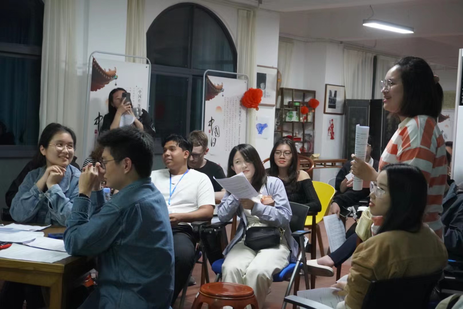 在2023年“世界读书日”之际,为响应学校关于开展国际学生“感知中国”活动和翔安校区2023年全民阅读的号召,促进中外学生交流融合,共同养成喜好阅读的习惯,共同感受读书的乐趣,4月27日晚,厦门大学国际中文教育学院“汉语角”活动在翔安校区国光二学生公寓中华文化体验室顺利举行。20余名中外学生踊跃参与,大家共聚一堂,共读春光。国际中文教育学院/海外教育学院韩国籍本科生洪珍永担任主持。