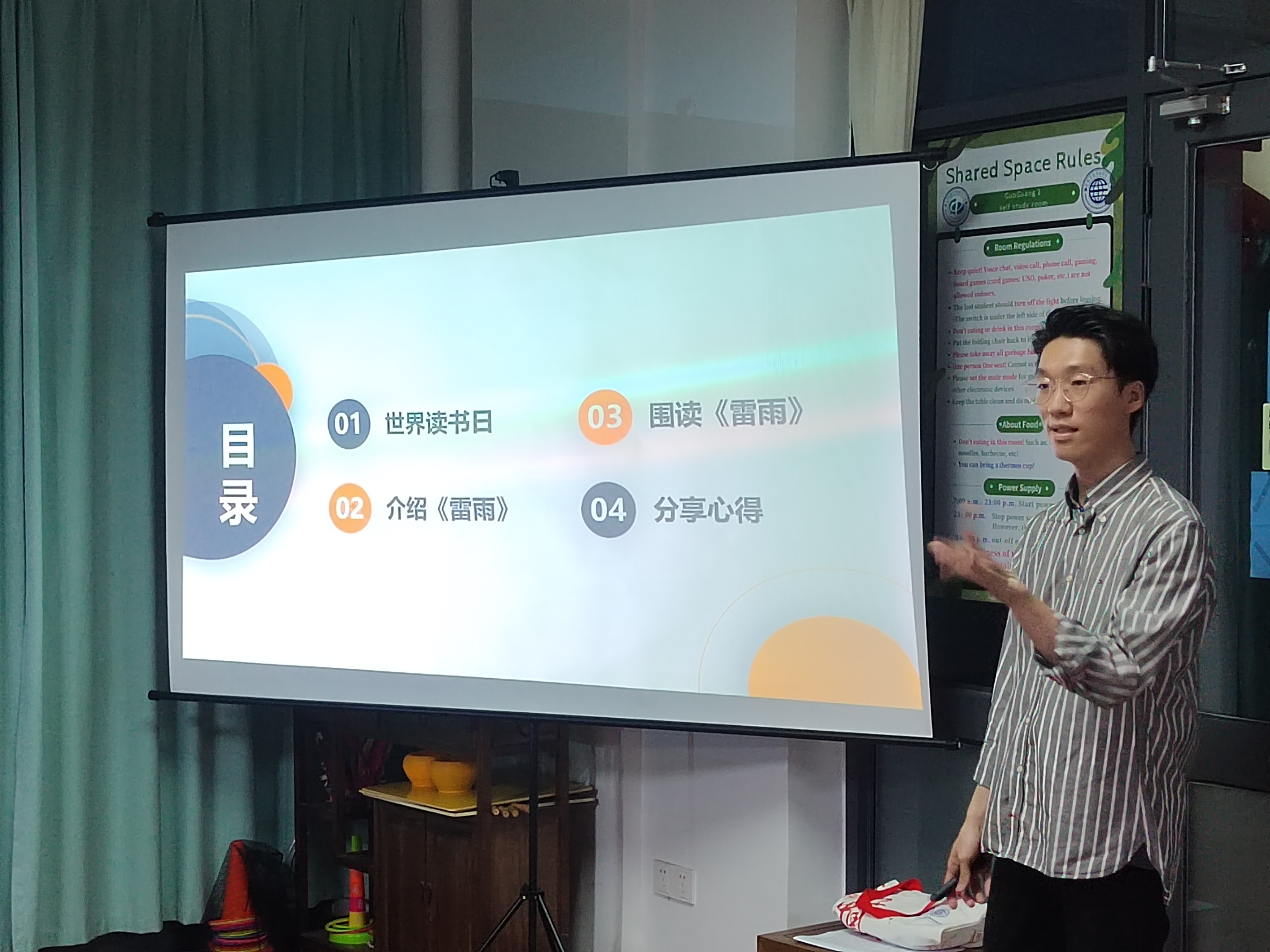 活动分为四个环节,分别是介绍“世界读书日”、围读《雷雨》剧本片段、赏析《雷雨》和分享心得。
