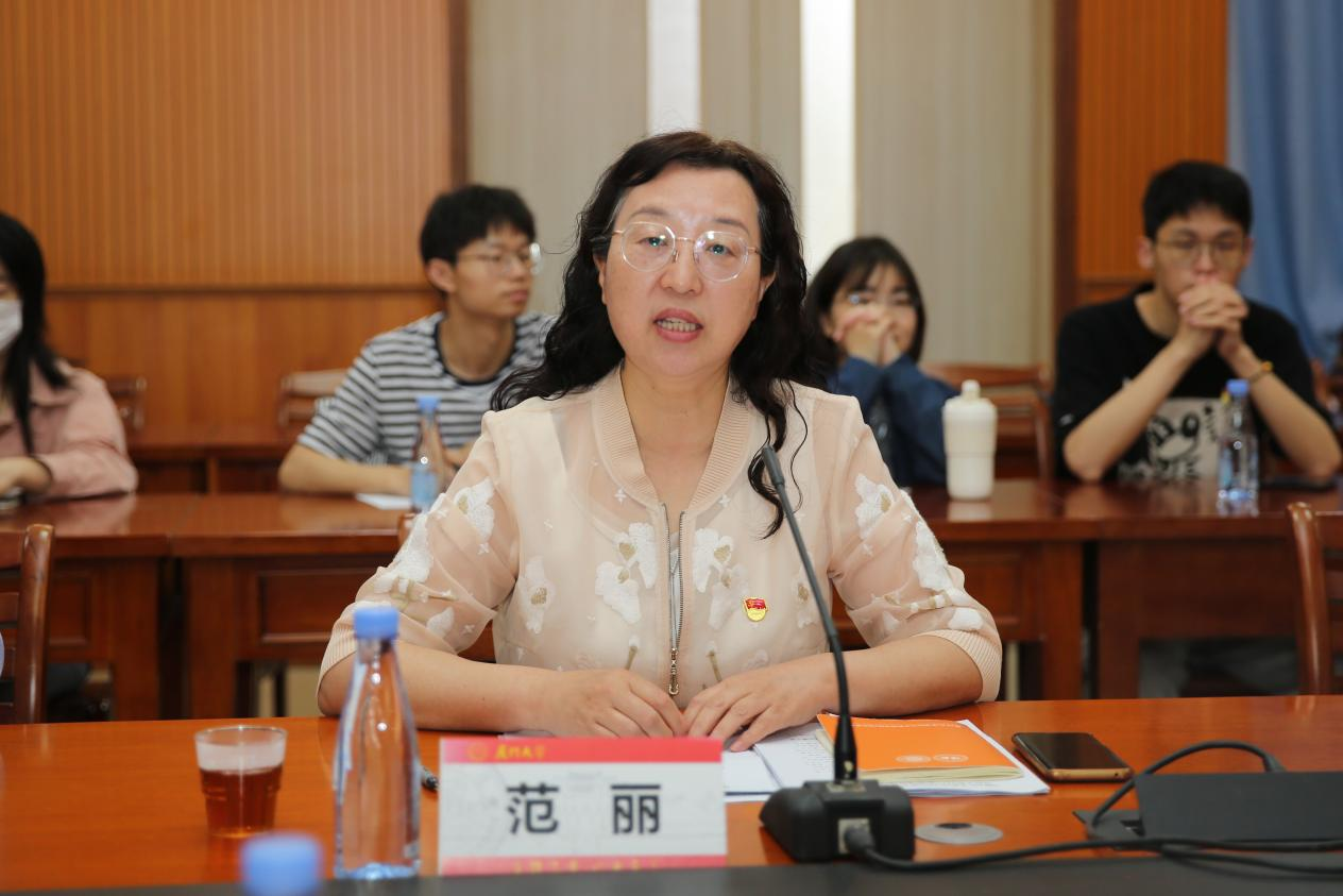 范丽结合主题教育的目标任务,对学院一体推进主题教育的重点措施进行部署。范丽指出,首先要提高政治站位,深刻认识开展主题教育的重大意义。开展主题教育,是推动贯彻党的二十大战略部署的有力举措,是深入推进新时代党的建设新的伟大工程的重大部署,是办好人民满意的大学的重要抓手,是推进学院党建与事业深度融合发展,助推事业进步的强大动力;其次是要立足发展大局,准确把握主题教育的目标要求,牢牢抓住学习贯彻习近平新时代中国特色社会主义思想这一个主题,把“学思想、强党性、重实践、建新功”的总要求贯穿始终,达到五个目标,解决六个方面的突出问题;三是要加强统筹谋划,一体推进主题教育走深走实。通过理论学习、调查研究、推动发展、检视整改、建章立制五项重点措施,推动主题教育取得扎实成效。把开展主题教育同推进“十四五”规划组织实施和第二轮“双一流”建设紧密结合,同开好学校第十二次党代会紧密结合,促进学校学院事业高质量内涵式发展,全面提升服务区域发展和国家战略能力;四是要强化组织领导,确保主题教育各环节取得实效。确保主题教育精心组织实施,强化督促指导,注重宣传引导、坚持求真务实。