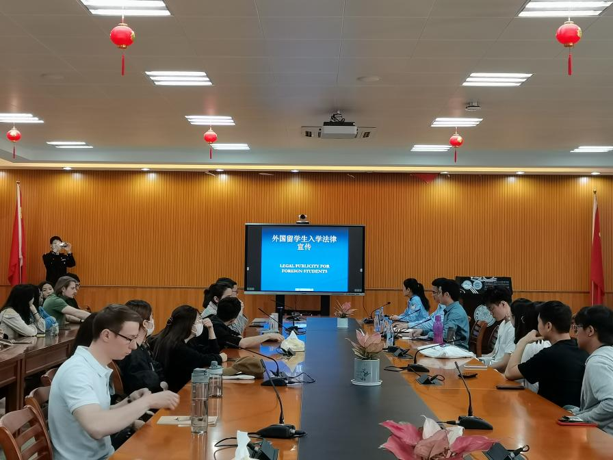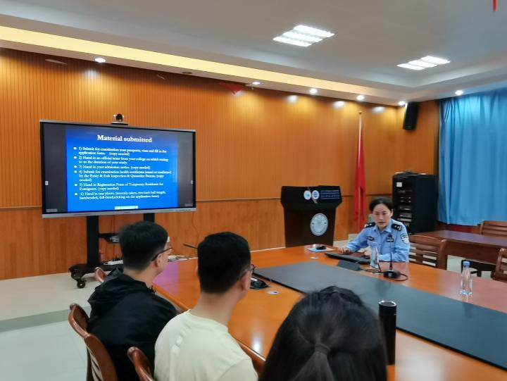 曾警官详细解释了居留手续申请、住宿登记、护照遗失补办、转学和毕业手续办理等与国际学生切身利益相关的问题,并说明了非法就业、非法居留等有关规定。同时,曾警官提醒同学们在自身安全受到伤害时,应该寻求正规渠道的帮助。
