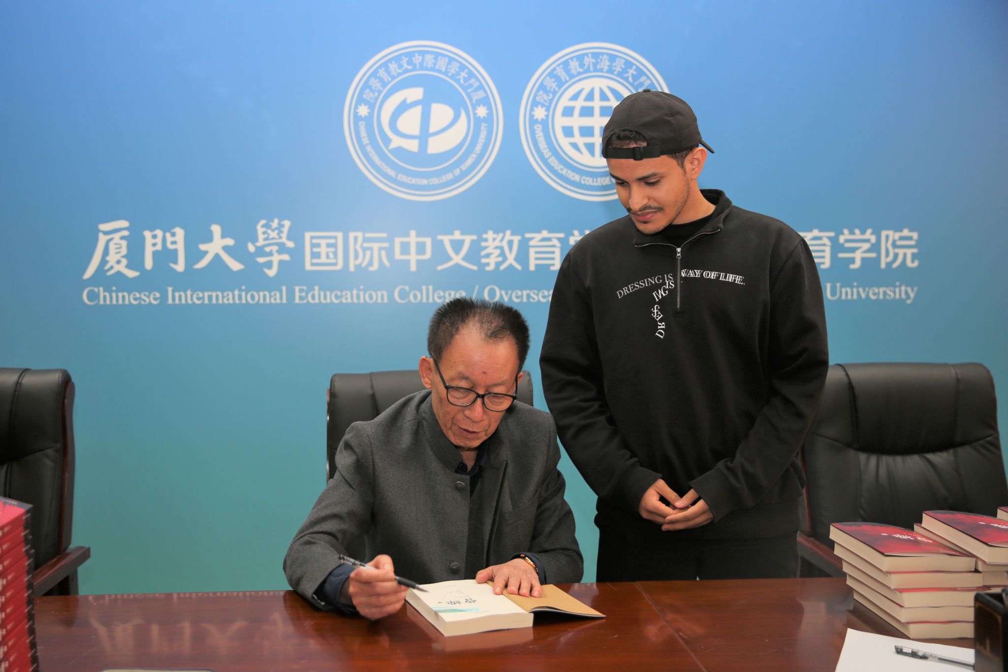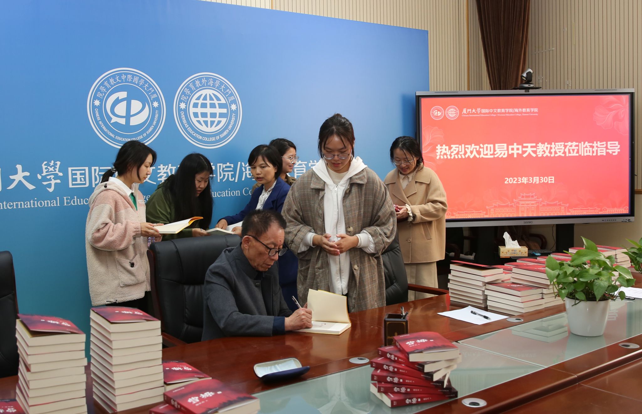 3月30日,值此厦门大学建校102周年之际,易中天教授莅临厦门大学翔安校区国际中文教育学院/海外教育学院,与我院中外师生亲切交流互动,并为参加“中国式现代化与国际中文教育发展论坛”的参会代表及中外师生签名。