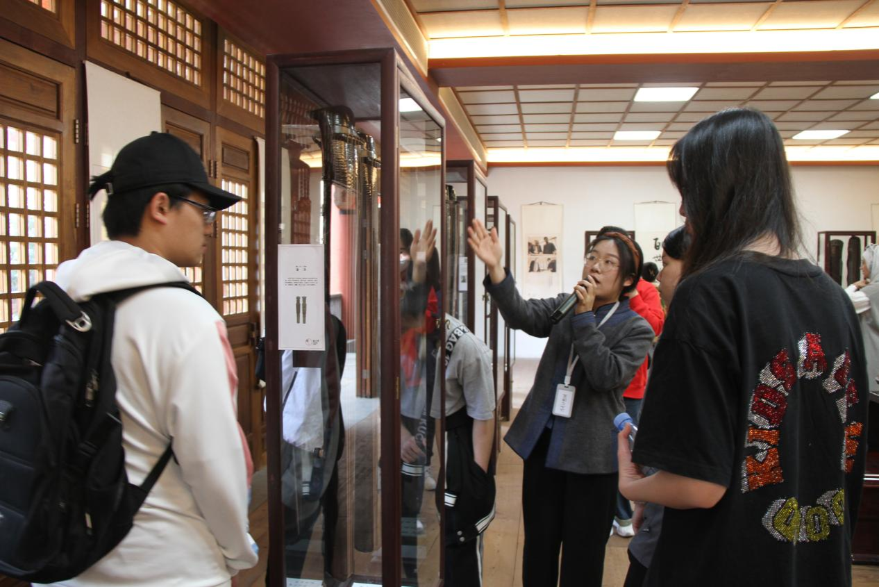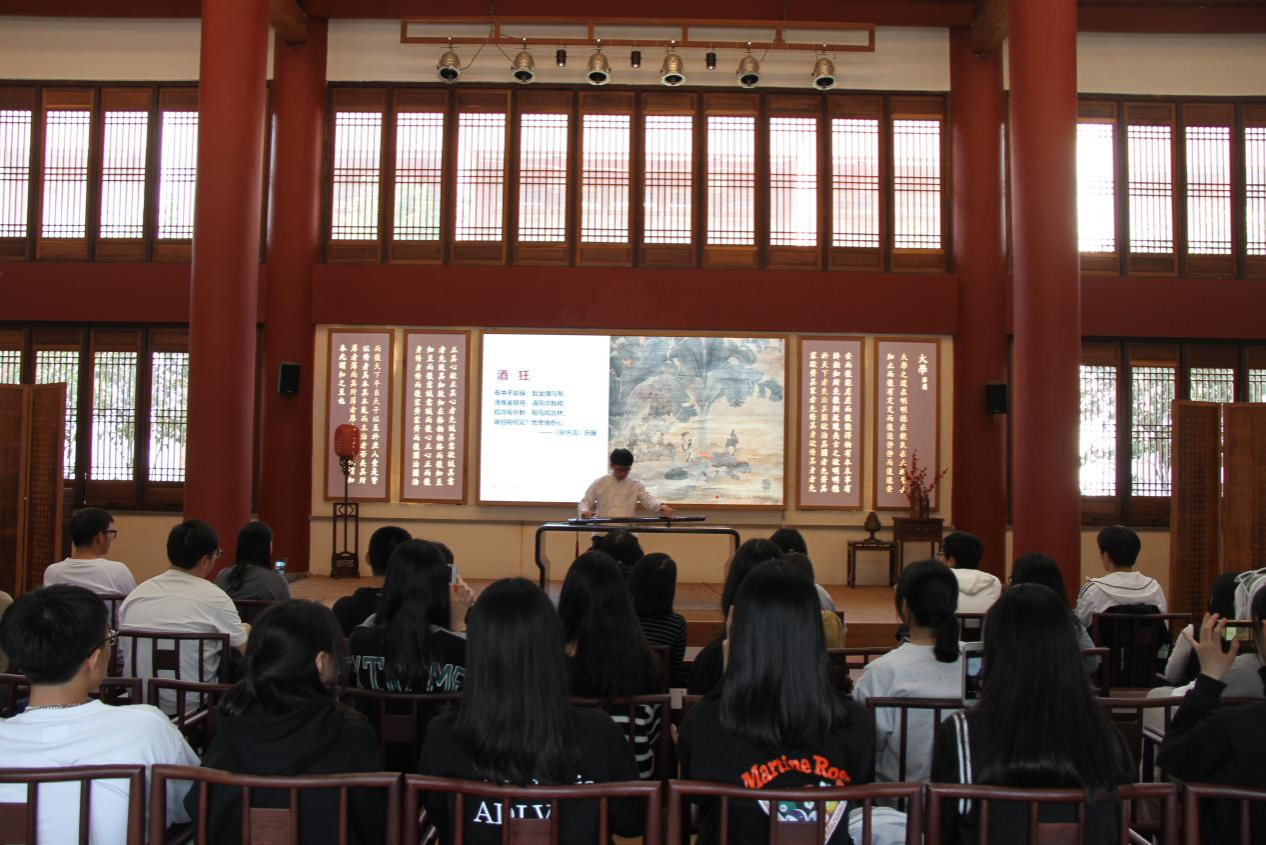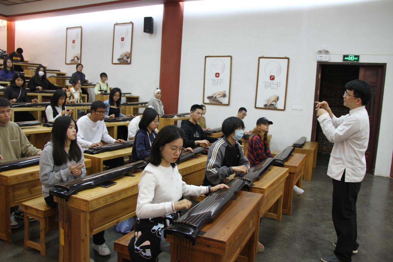 下午,同学们前往中国龙人古琴文化村,感受古琴文化的“旧曲”与“新声”。龙人古琴文化村位于漳州市长泰区马洋溪生态旅游区,拥有龙人斫琴坊、龙人古琴研究院、福建省龙人书院、福建龙人古乐团等机构。在龙人书院琴圣堂,同学们驻足聆听有关古琴的历史以及古琴的制作工艺顺序;在龙人讲堂,由古琴师带来的《酒狂》荡气回肠,赢得同学们满堂喝彩;一曲《鹿鸣》弹唱结合,弦歌琴韵涤荡心灵。曲罢,余音绕梁,掌声雷动。
