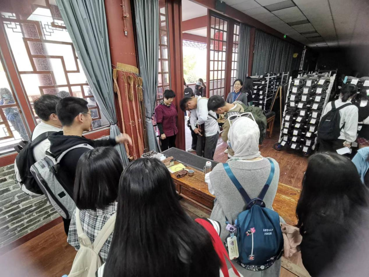 “泠泠七弦音,清如玉壶冰”。同学们来到龙琴坊近距离感受龙人古琴的制作工艺。林同学与曾同学亲自体验了制作古琴的最后一道工序——上弦。龙琴采用独创之冰弦,手感顺畅、音色古朴,余韵悠长。林同学感触颇深:“上弦很辛苦,不光要劲大,还要有技巧。我国的古琴制作工艺源远流长,需要我们细细品味。”