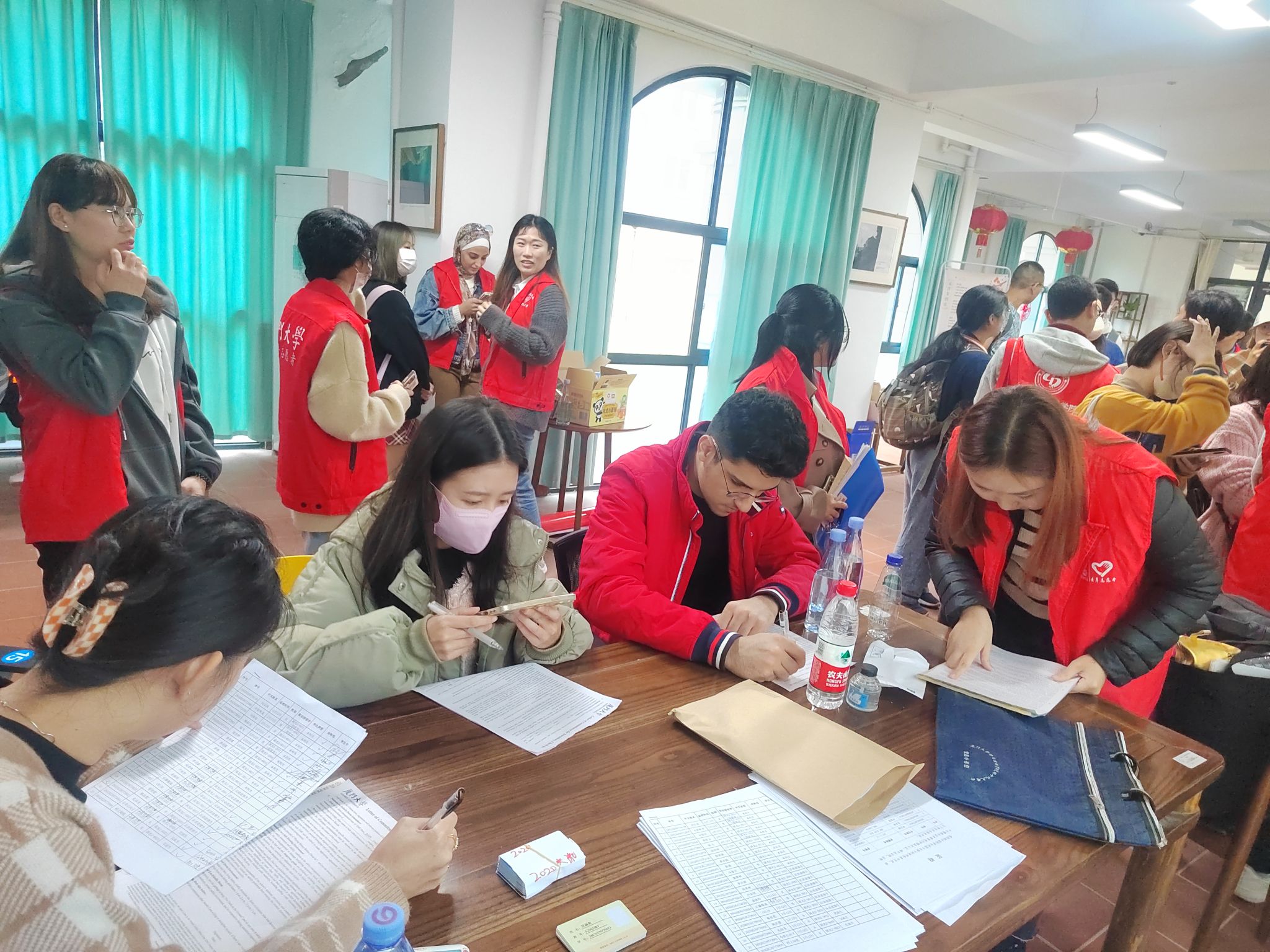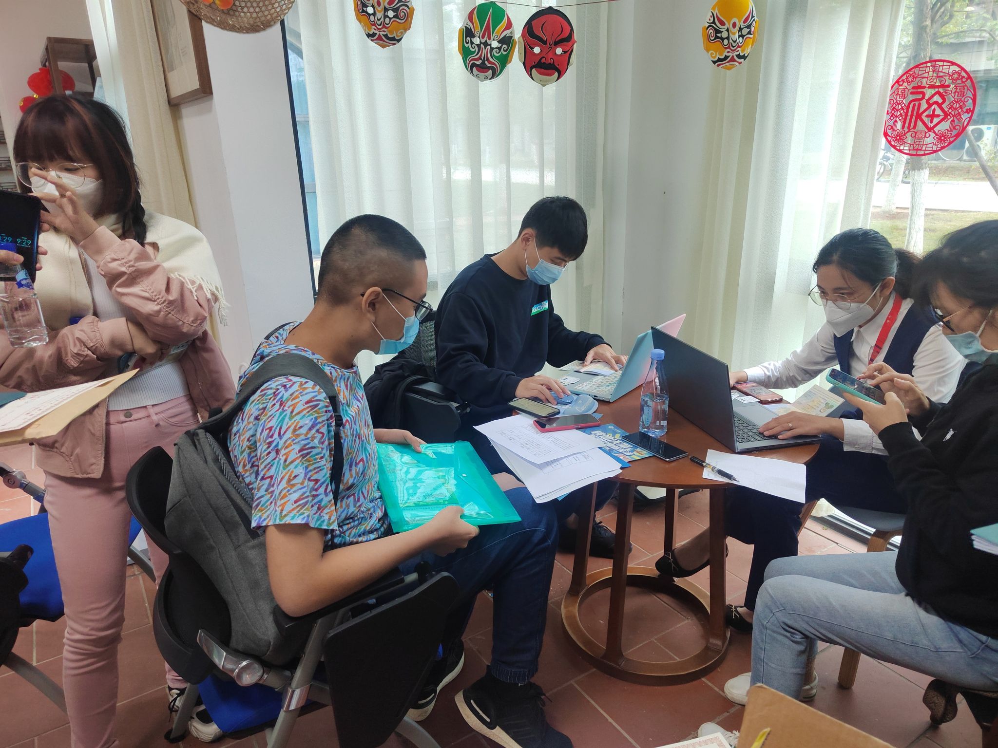 在翔安校区国光二共享空间,学院辅导员和志愿者们耐心办理注册和入住手续,解答新生们的问题,让他们感受到了亲切与关怀。特别值得一提的是,在场十几名志愿者当中,大多数为外籍生志愿者,这也是学院的特色之一。