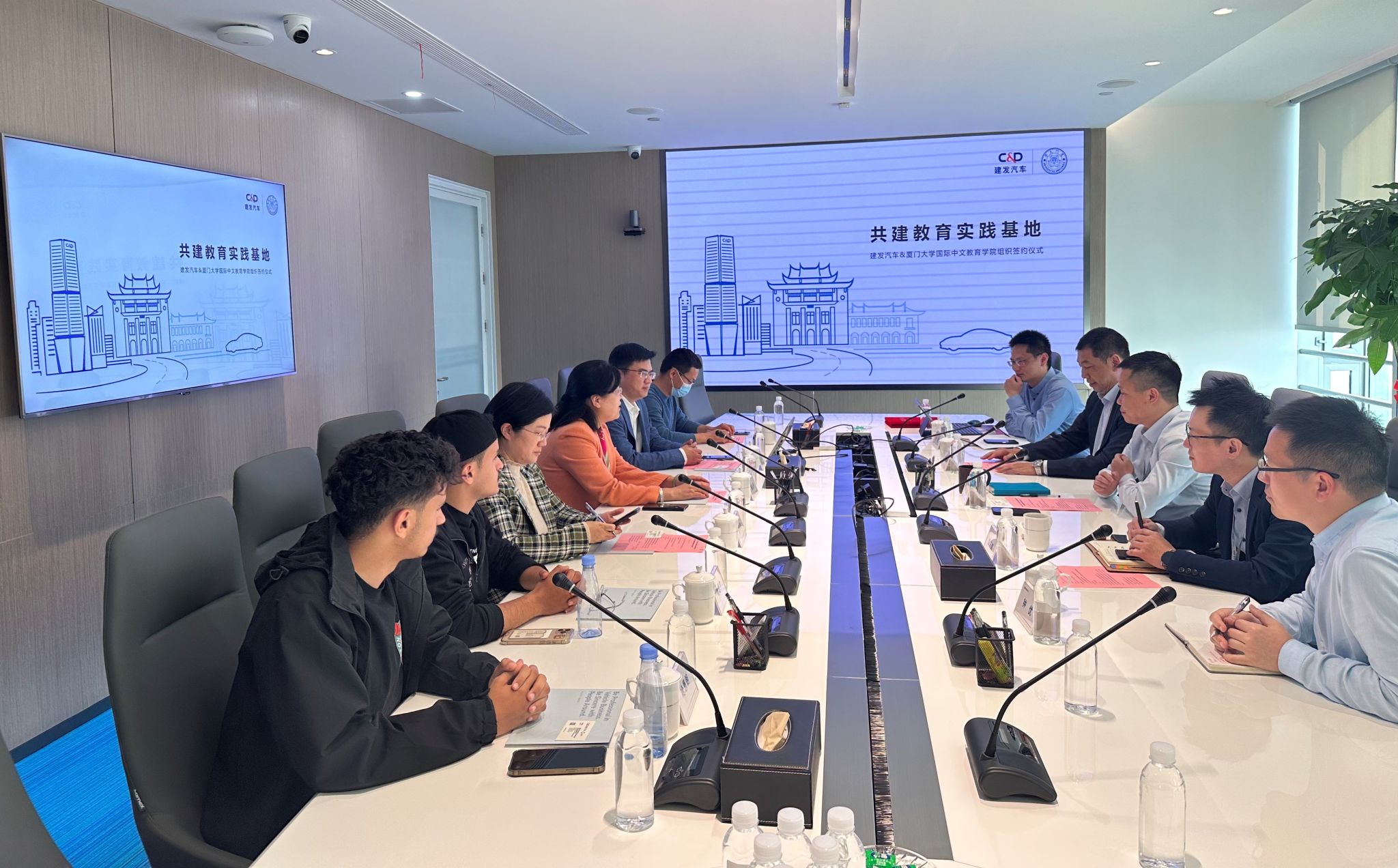 3月1日下午,厦门大学国际中文教育学院/海外教育学院与建发汽车集团(以下简称“建发汽车”)在建发汽车总部举行共建教育实践基地签约暨揭牌仪式。建发汽车总经理黄卫平、国际中文教育学院/海外教育学院院长陈志伟出席会议并致辞。参加仪式的还有建发汽车国贸事业部总经理李长庚、建发股份人力资源部副总经理陈庆辉、建发汽车人力行政中心总监张驰、人力资源部副总经理钟优,国际中文教育学院/海外教育学院党委副书记林明华、语合中心副主任何冬梅、留学生代表等。