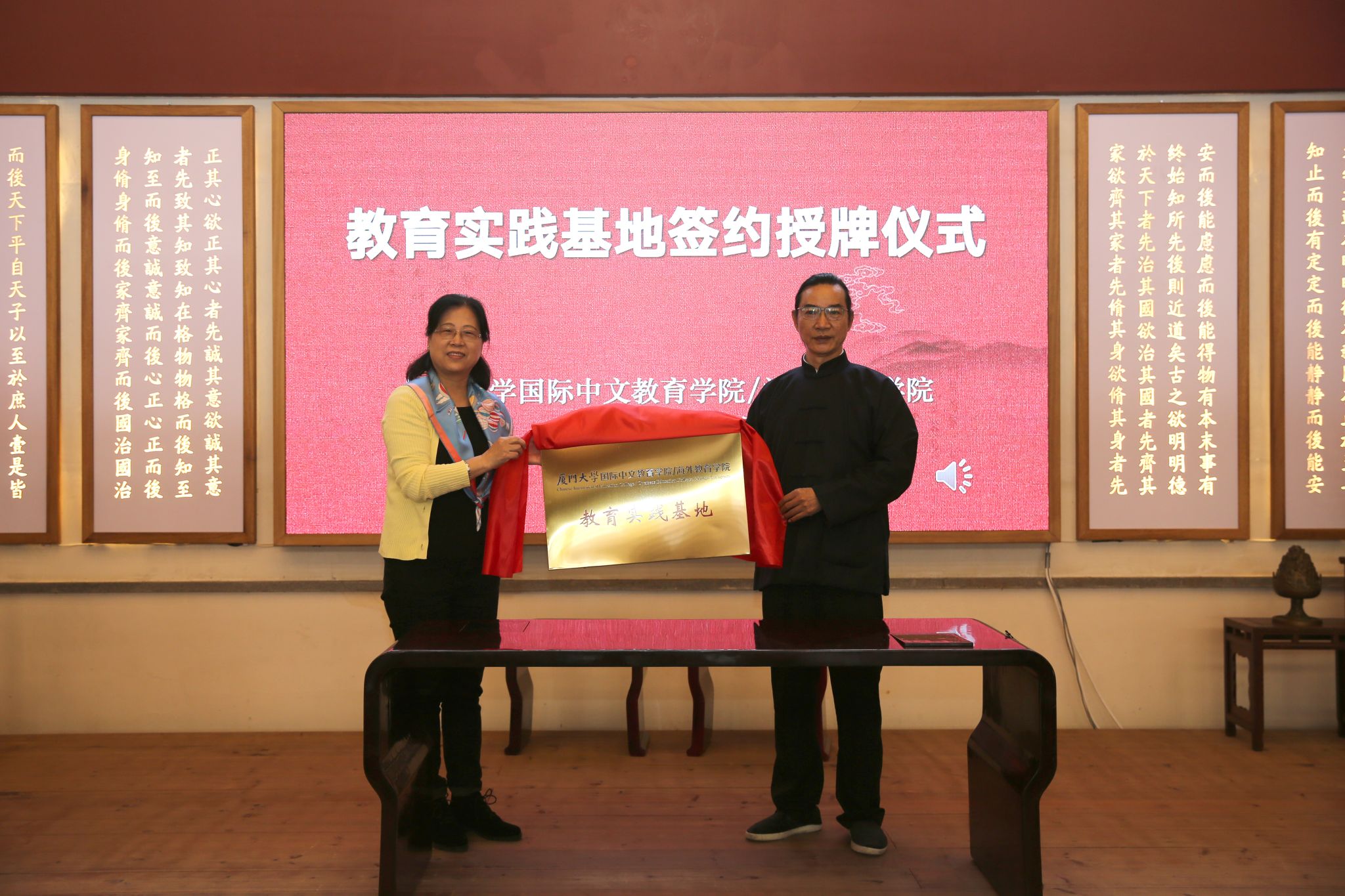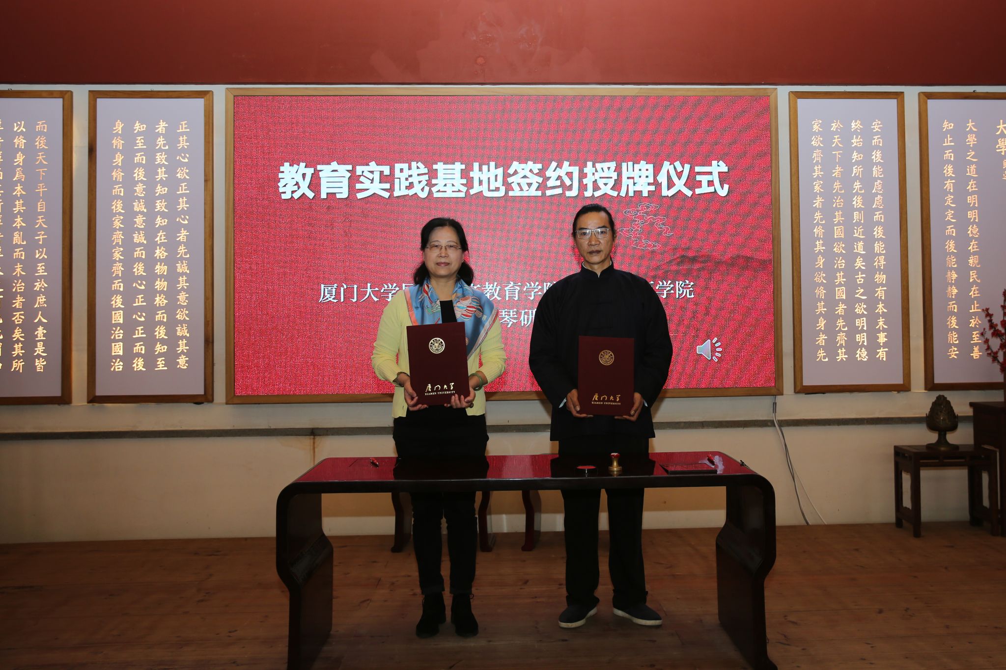 双方就共建学生教育实践基地、构筑实践平台、开设龙人古琴课堂等事宜达成合作框架,签署了共建“厦门大学国际中文教育学院/海外教育学院教育实践基地”合作协议,并举行“厦门大学国际中文教育学院/海外教育学院教育实践基地”揭牌仪式。