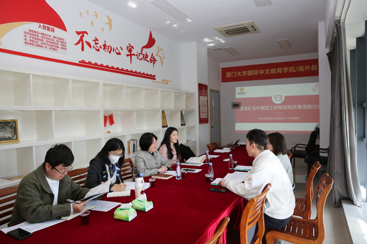 2月16日,紫金矿业集团培训处处长林晞一行来访国际中文教育学院/海外教育学院,洽谈员工培训和中文教学合作事宜。学院副院长潘超青教授、语合中心副主任林琳、语合中心赵治平出席座谈。