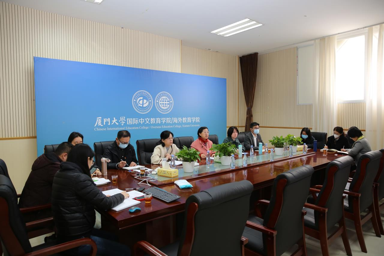 2023年2月15日上午,国际中文教育学院/海外教育学院2022年度中层党员领导干部民主生活会在翔安校区坤銮楼B509会议室召开。会议由学院党委书记范丽主持,学院领导班子成员参加,华文系副主任郭建花、孟繁杰、语合中心副主任何冬梅、办公室主任洪伟、工会副主席秦晶晶列席了会议。校基层党建联络员、民主生活会第四督导组组长郑冰冰线上参会指导并点评。