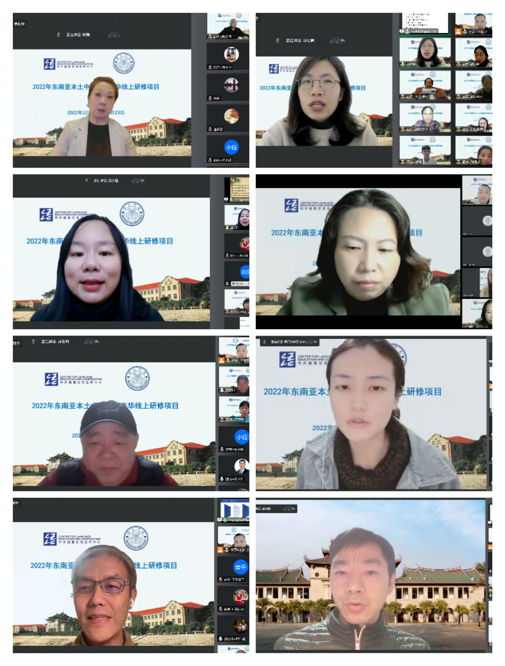 12月23日,由教育部中外语言交流合作中心主办、厦门大学国际中文教育学院/海外教育学院承办的“2022年东南亚本土中文教师来华线上研修项目”顺利结业。厦门大学国际中文教育学院/海外教育学院副院长潘超青、厦门大学中外语言交流合作中心副主任林琳、厦门大学教授朱宇等老师以及来自越南、泰国、缅甸等东南亚地区的一百余位本土中文教师参加结业仪式。