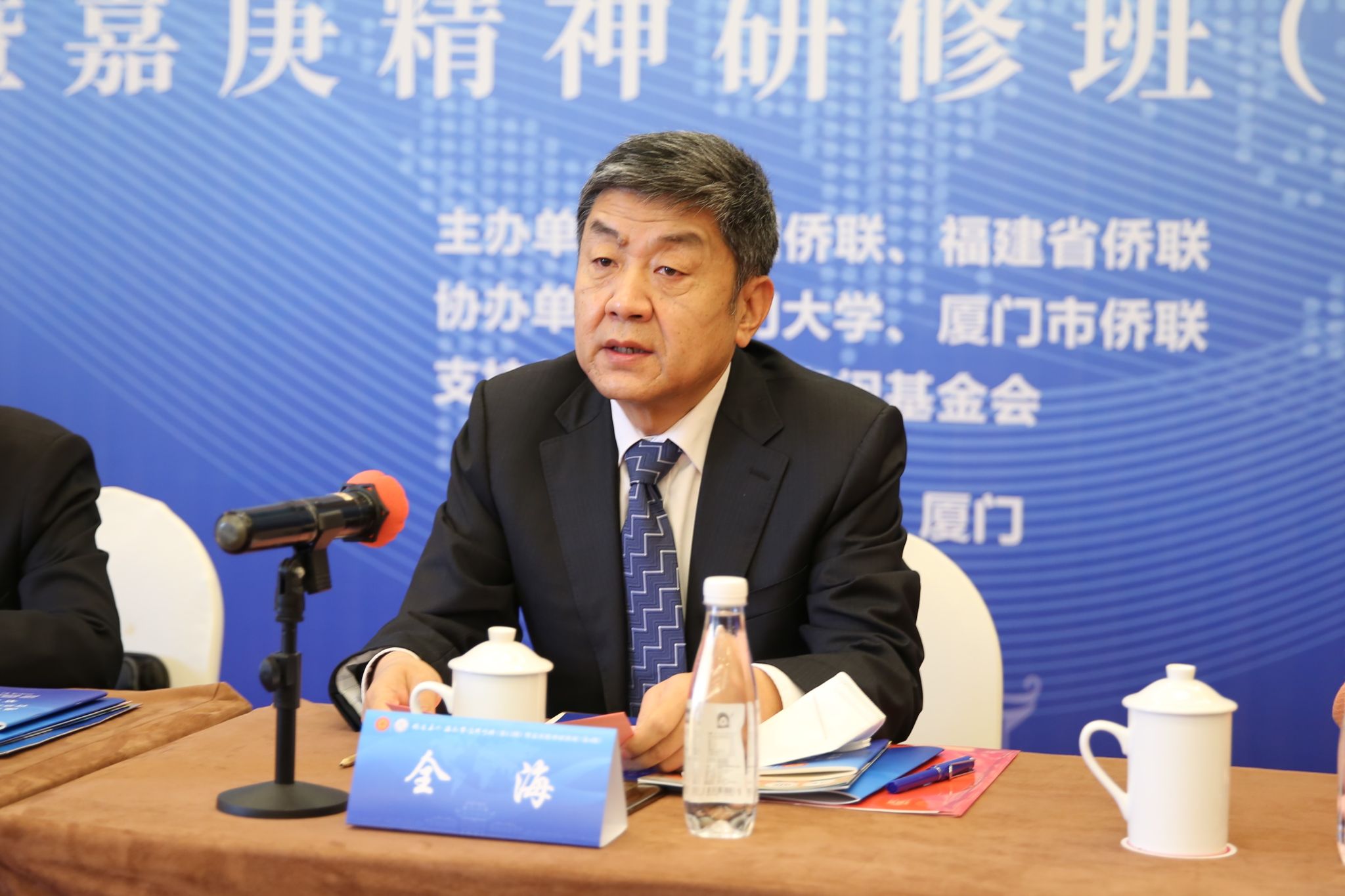 陈式海讲话。他代表中国侨联和福建省侨联对各位学员表示欢迎并介绍了中国侨联海外联谊研修班的宗旨和目的,寄望大家学有所获。同时对学员提出四点希望:一是要做社会主义现代化国家建设参与者,更加紧密地团结在以习近平同志为核心的党中央周围,在以中国式现代化全面推进中华民族伟大复兴进程中贡献力量;二是要做传承嘉庚精神的践行者,在海外打拼、创业、发展过程中,继承和宣传以爱国、奋斗、奉献为核心的“嘉庚精神”;三是做弘扬中华文化的传播者,发挥融通中外的优势,让中华优秀传统文化的种子在世界各地生根发芽、茁壮成长;四是要做促进和谐侨团的推动者,传承和弘扬立会为公、务实奉献等的优良传统,共谋为侨服务之道。