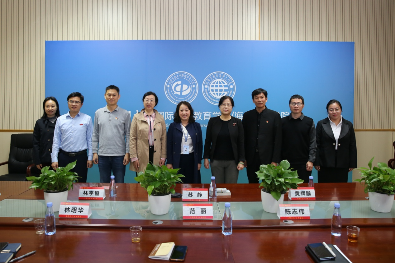 11月30日上午,厦门市外国语学校翔安分校(翔城中学)校长苏静、副校长黄辉鹏、教师发展中心主任许东海一行来我院调研,学院党委书记范丽、院长陈志伟、党委副书记林明华、以及团委书记陈艺新、辅导员关丽文、教学科秦晶晶参加了座谈会。