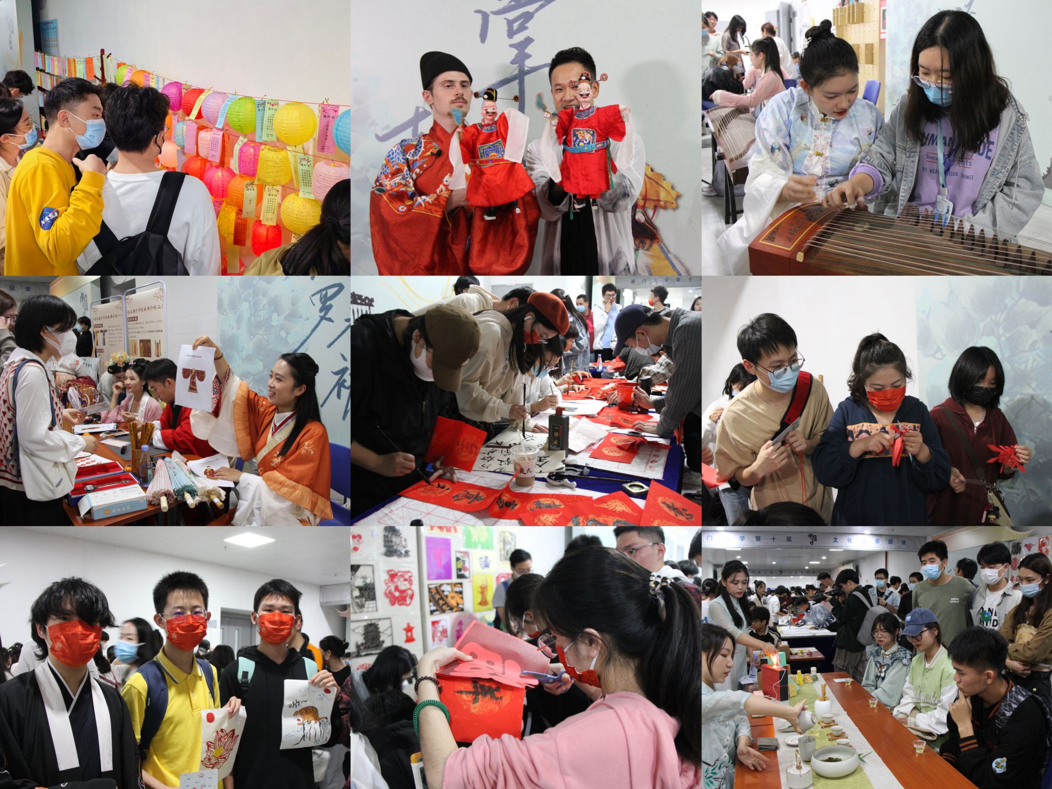 在文化活动体验区,精心设置了书画、汉服、茶艺、纸艺、结绳、乐器、传统游戏、布袋木偶戏八大非物质文化遗产体验板块,国际中文教育学院的师生和专家们热情为前来参加的我校国内外学生们介绍中国传统文化。同学们热情高涨,积极参加到各项体验活动中。