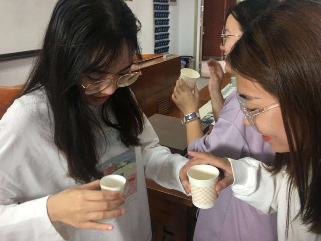 接着,同学们亲身体验泡茶过程。赵老师对同学们泡茶过程中呈现出的问题进行详细指导,并耐心地回答大家的问题。