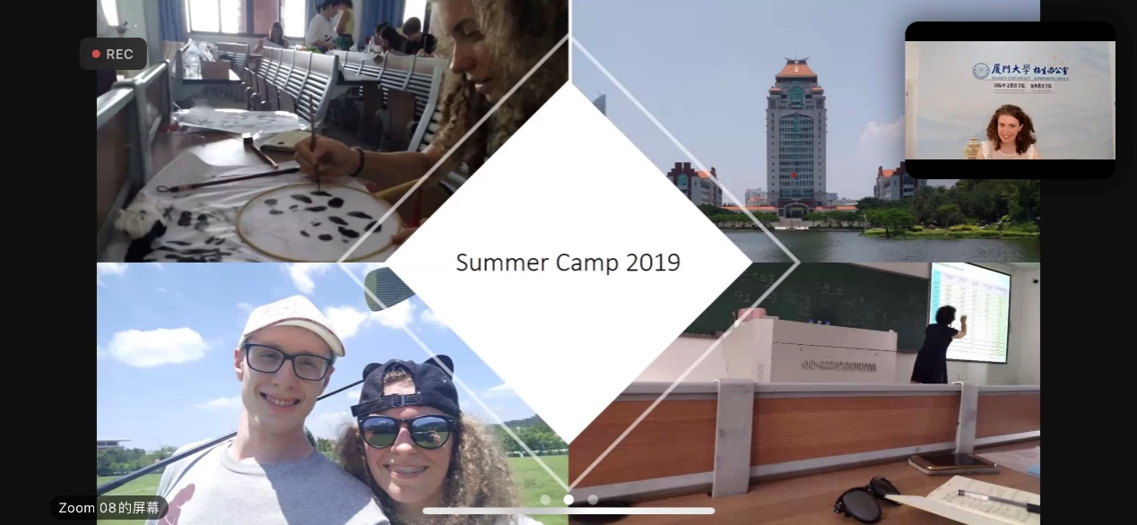 来自波兰的马琳娜也给大家分享了她来厦大的学习生活经历,2019年她通过波兰弗罗茨瓦夫大学孔子学院组织的来华夏令营活动,第一次来到厦门大学,三年后依然念念不忘厦大,且通过国际中文教师奖学金项目再次来到厦门大学学习。她表示非常期待学院马上举行的第十届中国日活动,在本次活动上她将上台表演,近期参与其中彩排的感觉很棒。