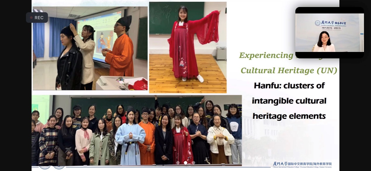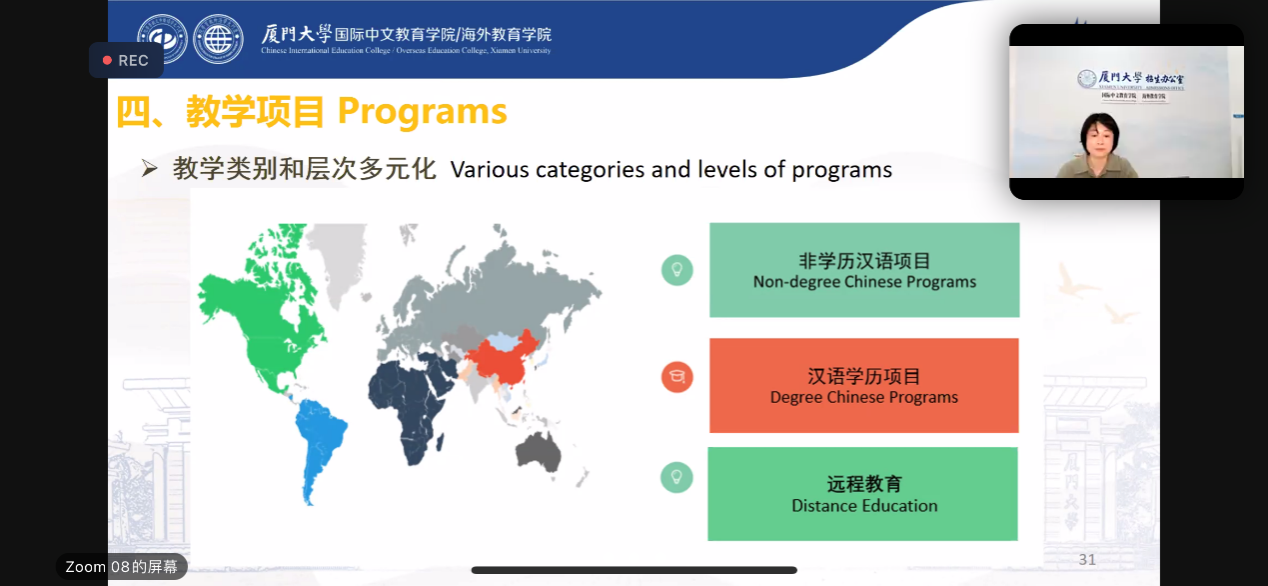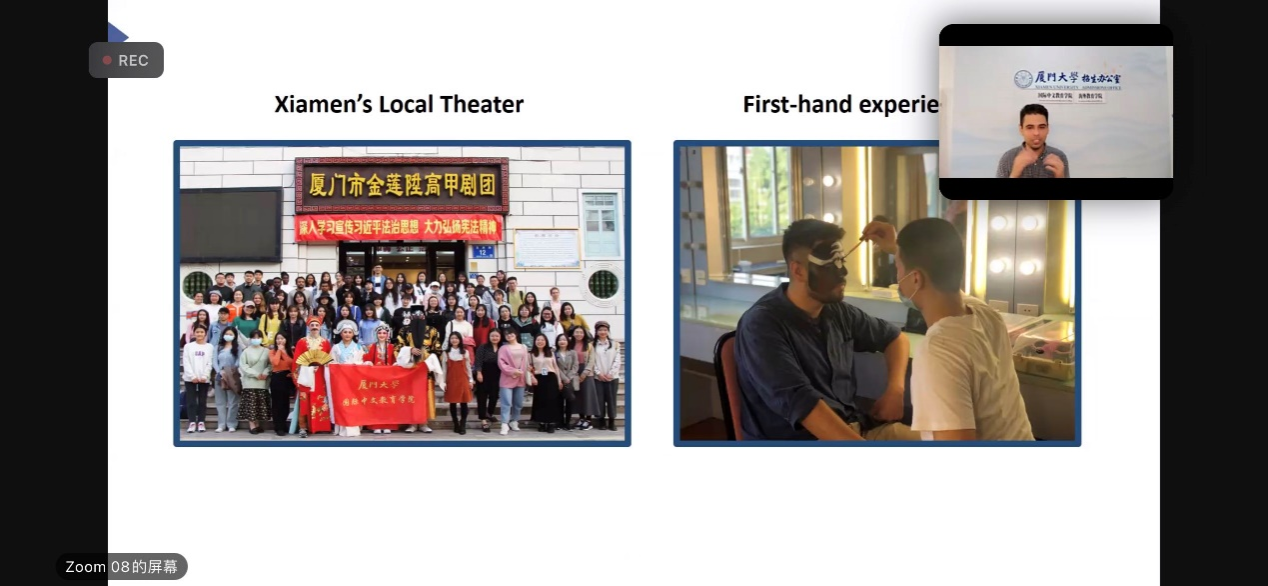 学院坚持文化育人的理念,推出系列中华文化体验创新课程,王天骁老师给线上的同学们详细展示了学院的各类文化课程项目,让大家通过各种活动图片感受到来厦门大学国际中文教育学院/海外教育学院学习将有怎么样的体验。
