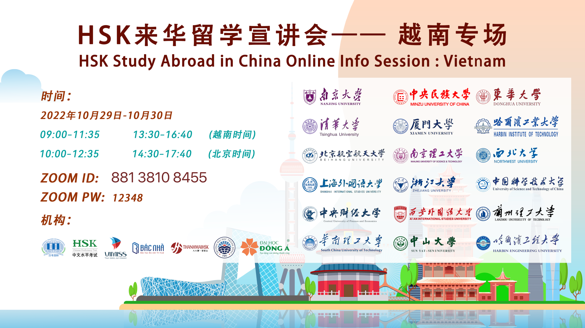 10月29日下午,厦门大学招生办公室、国际中文教育学院/海外教育学院以线上形式参加了2022年HSK来华留学宣讲会(越南专场)。2022年HSK来华留学宣讲会(越南专场)由汉考国际主办,旨在帮助越南的学生全面掌握留学中国的最前沿信息。厦门大学、清华大学、浙江大学、南京大学等18所知名大学参与。
