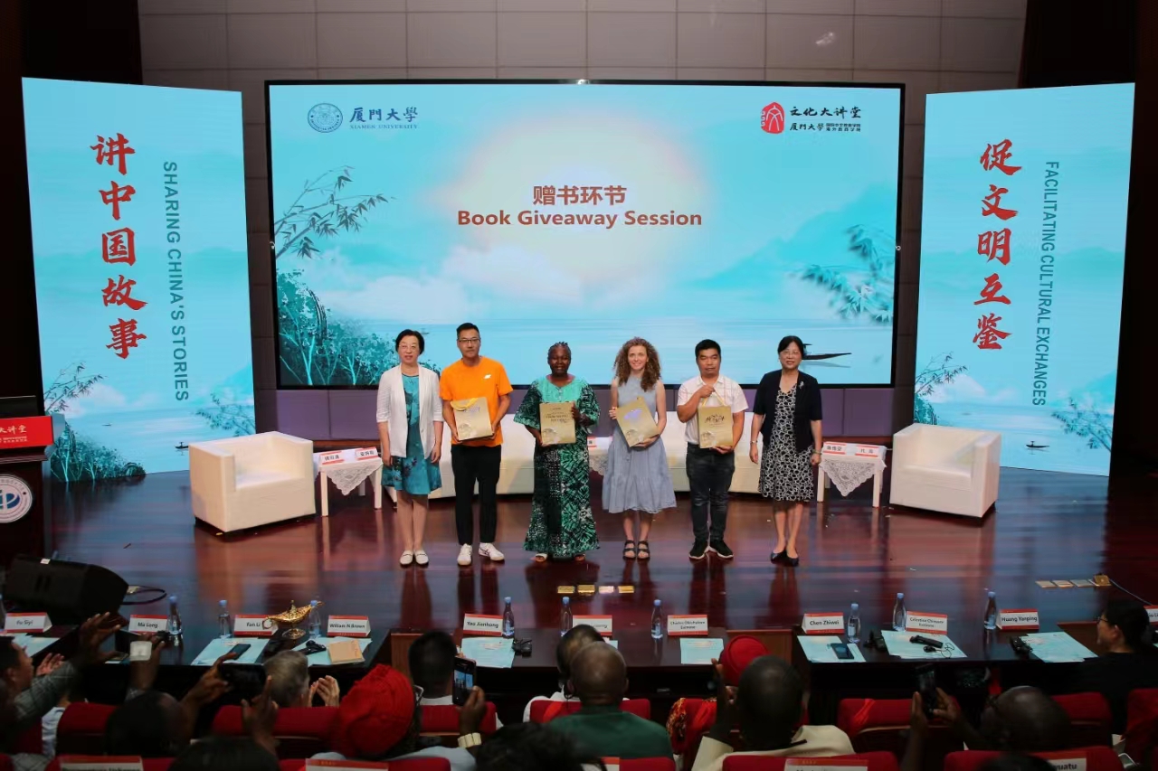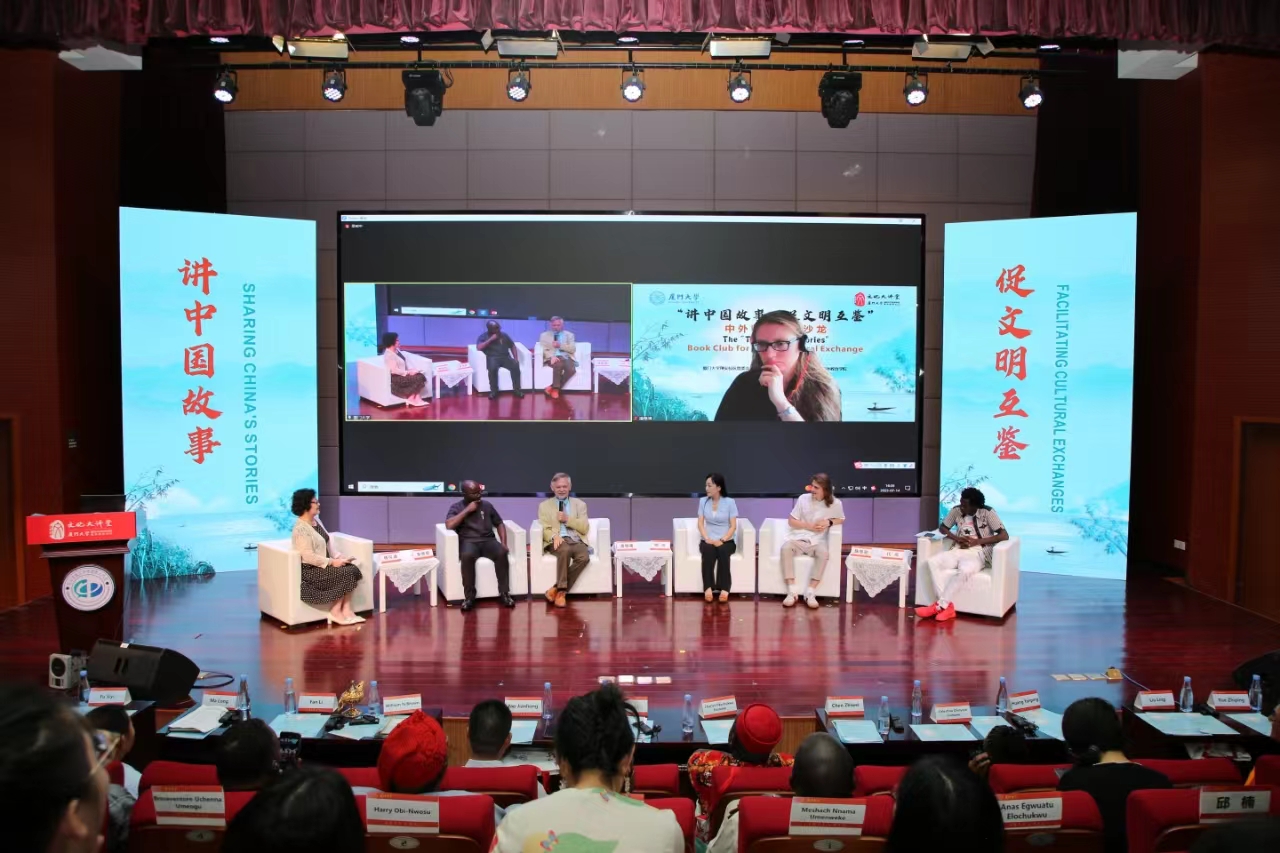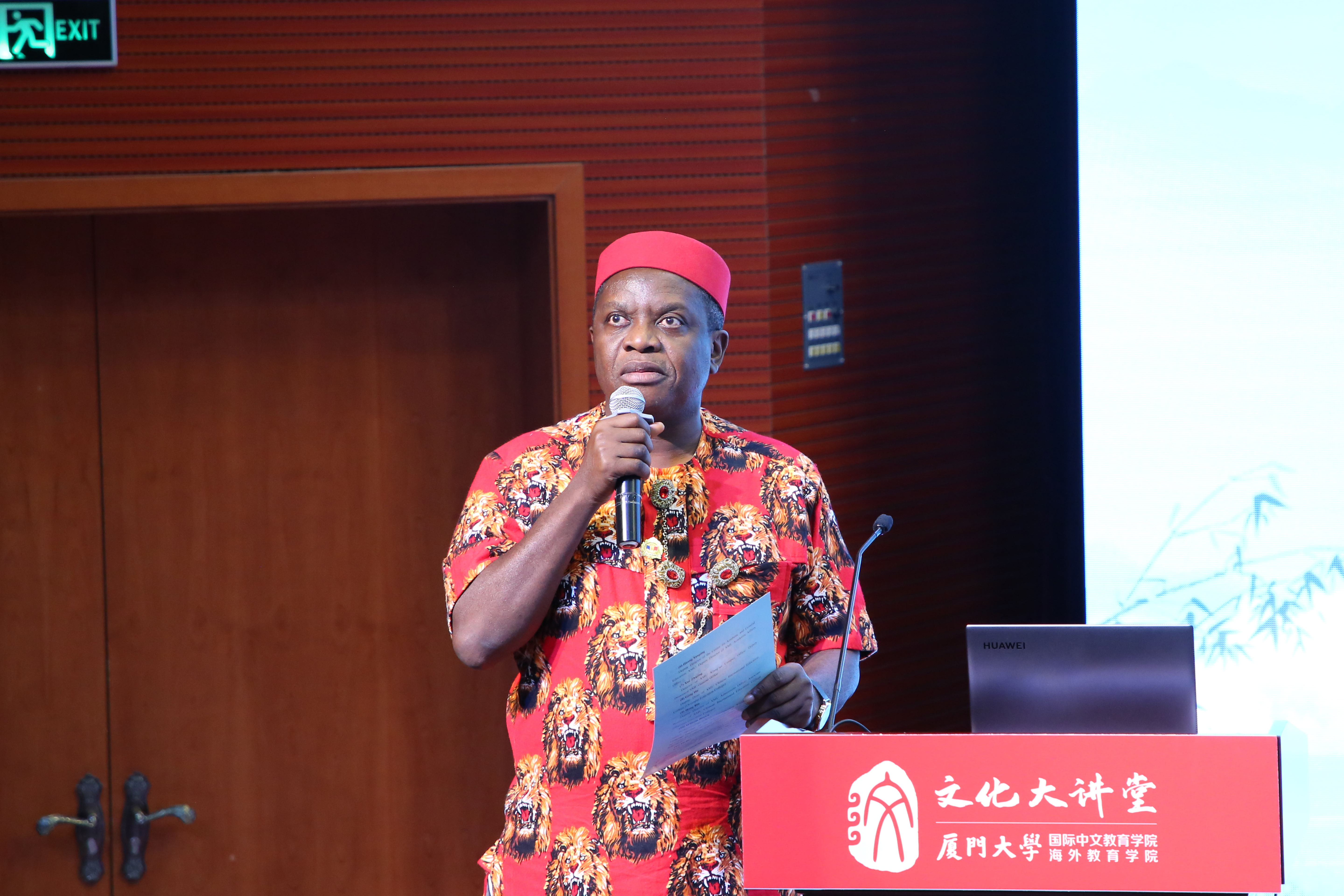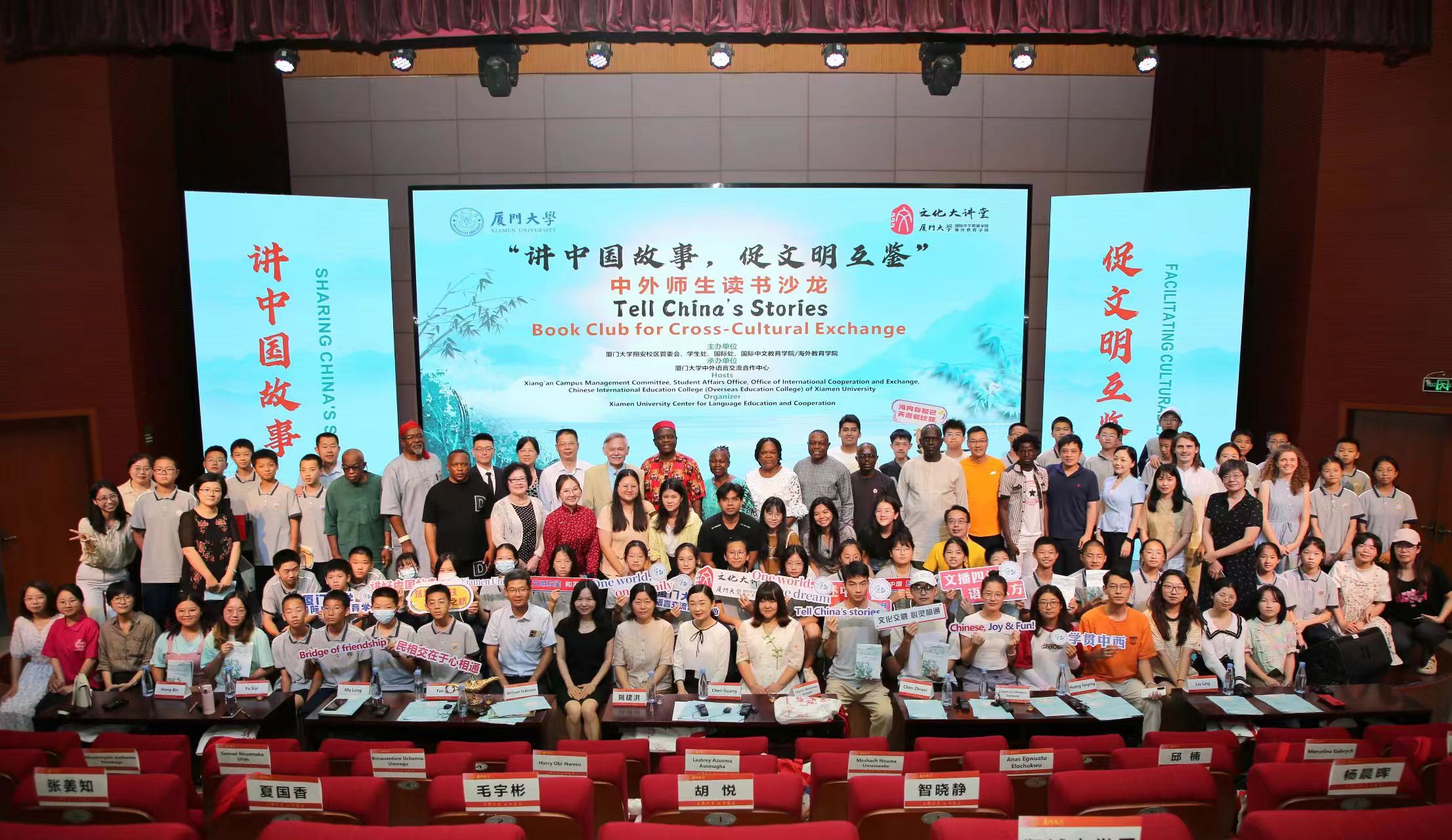 为更好地讲述中国故事,推动中外文明交流互鉴,让中国走向世界,让世界读懂中国。7月14日,厦门大学国际中文教育学院“文化大讲堂”第四期——“讲中国故事,促文明互鉴”中外师生读书沙龙活动,于厦门大学翔安校区国际中文教育学院/海外教育学院B102多功能厅顺利举行。本次活动由厦门大学翔安校区管委会、学生处、国际处、国际中文教育学院/海外教育学院共同主办,厦门大学中外语言交流合作中心承办。厦门市人民政府外事办公室副主任姚建洪、厦门大学校长助理陈光、尼日利亚纳姆迪•阿齐克韦大学校长Charles Okechukwu Esimone、厦门大学翔安校区管理委员会副主任马龙、厦门大学国际中文教育学院/海外教育学院党委书记范丽、院长陈志伟、厦门大学管理学院教授潘维廉,厦门大学外文学院傅似逸教授,以及来自德国、新西兰、南非、土耳其、泰国、印度尼西亚、老挝、菲律宾、玻利维亚、乌克兰、尼日利亚、喀麦隆、吉尔吉斯斯坦等10余个国家的中外师生共计200余人通过线上和线下的方式参加了活动。