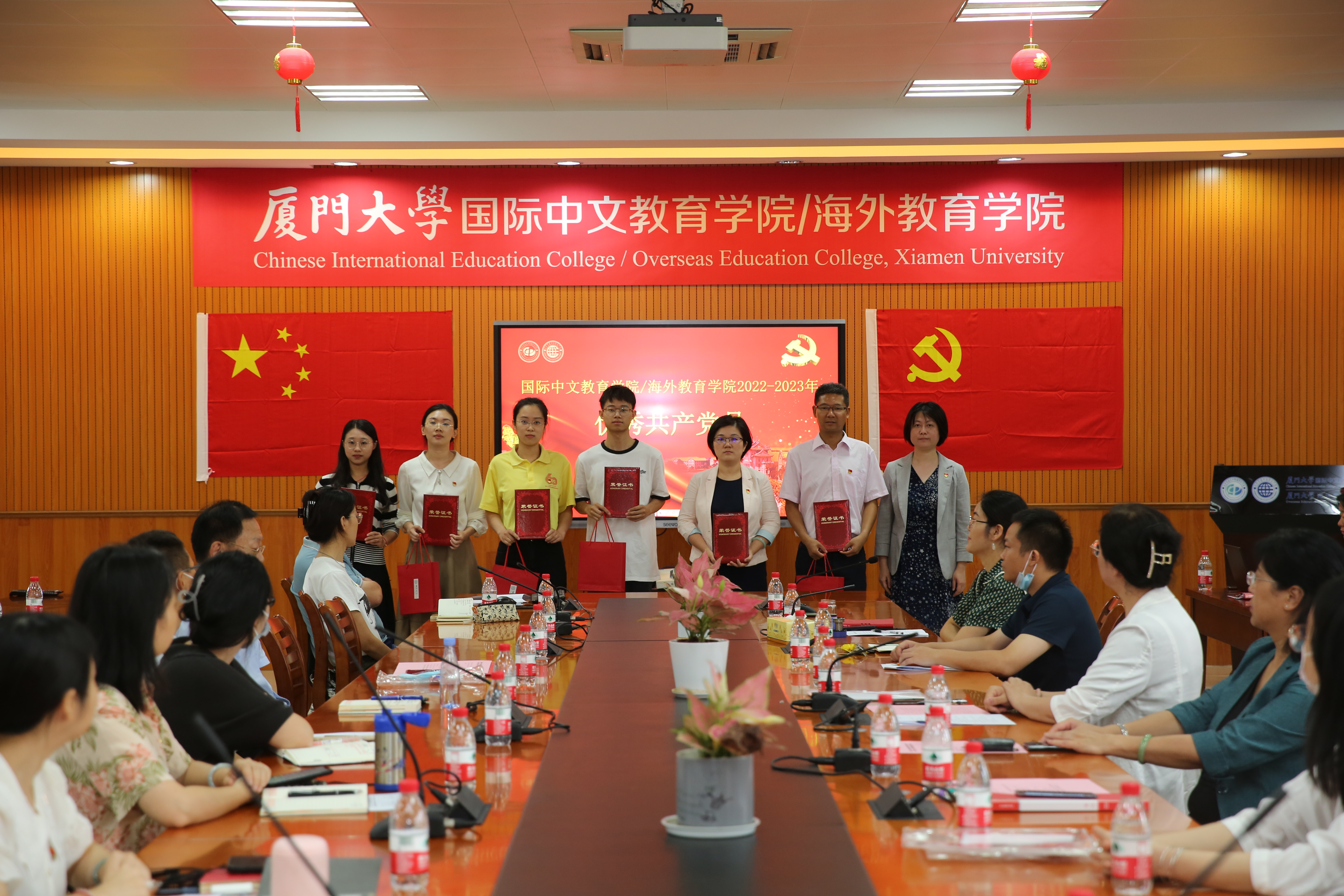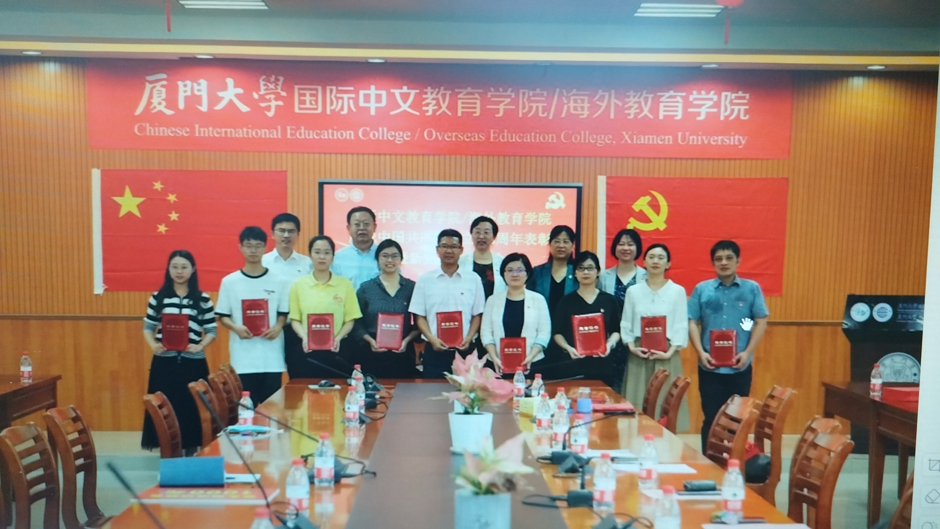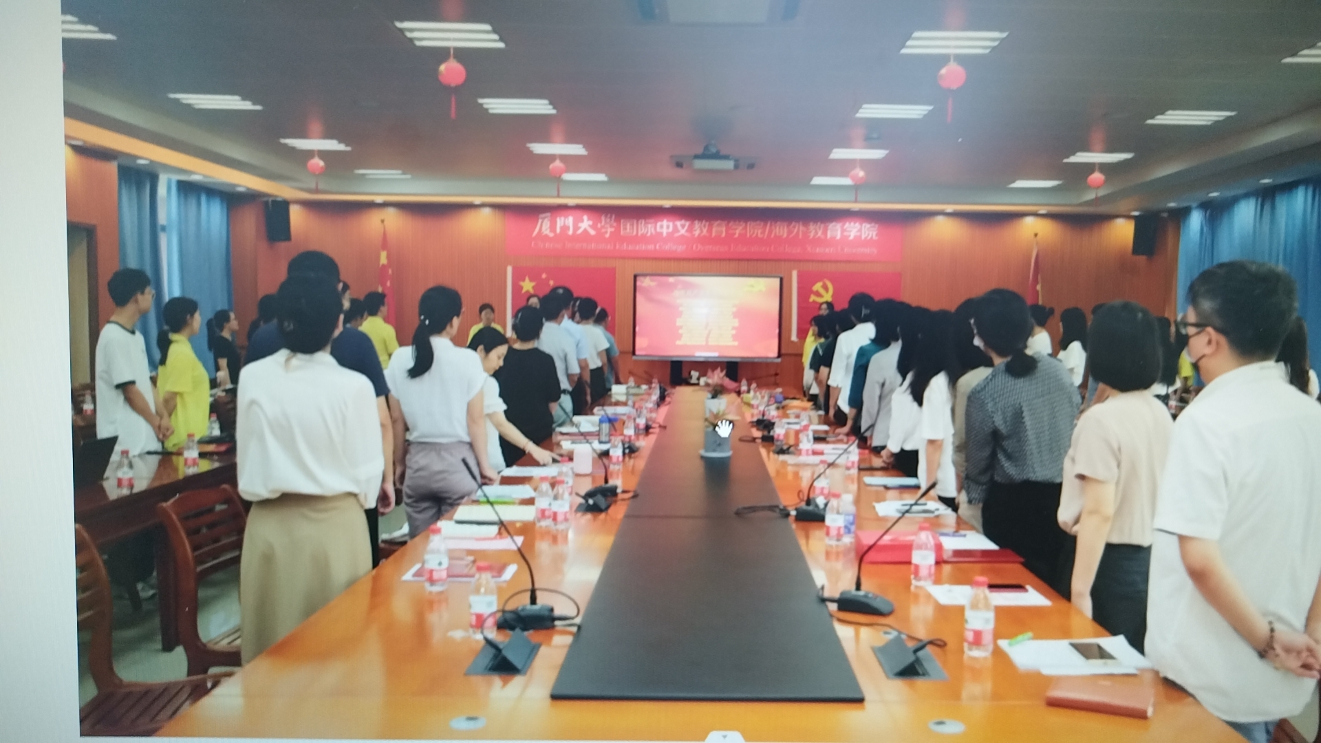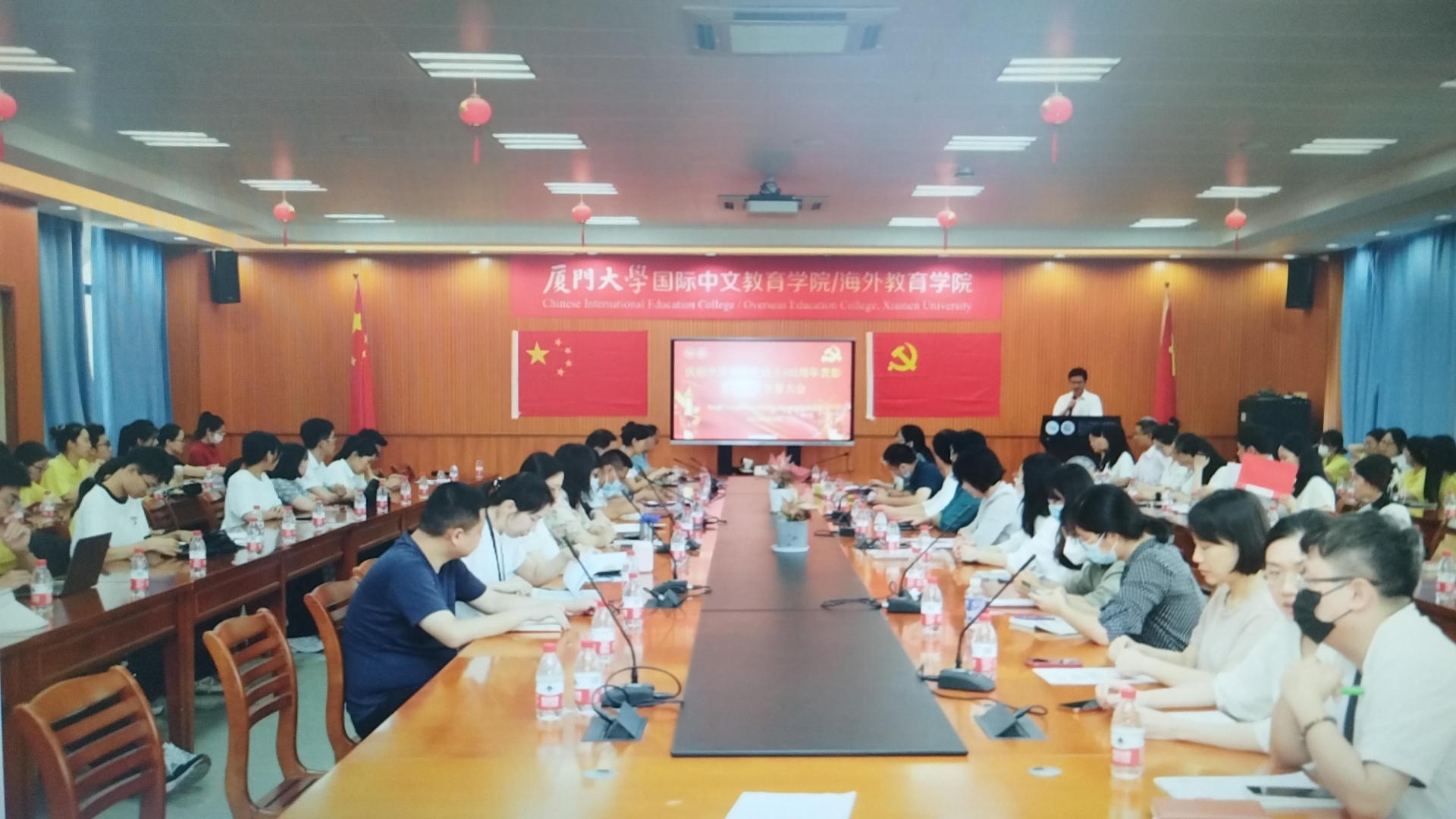 6月29日上午,国际中文教育学院/海外教育学院在坤銮楼C104会议室召开庆祝中国共产党成立102周年表彰暨新党员宣誓大会。学院党委委员,全体师生党员、入党积极分子参加了会议。会议由学院党委副书记林明华主持。