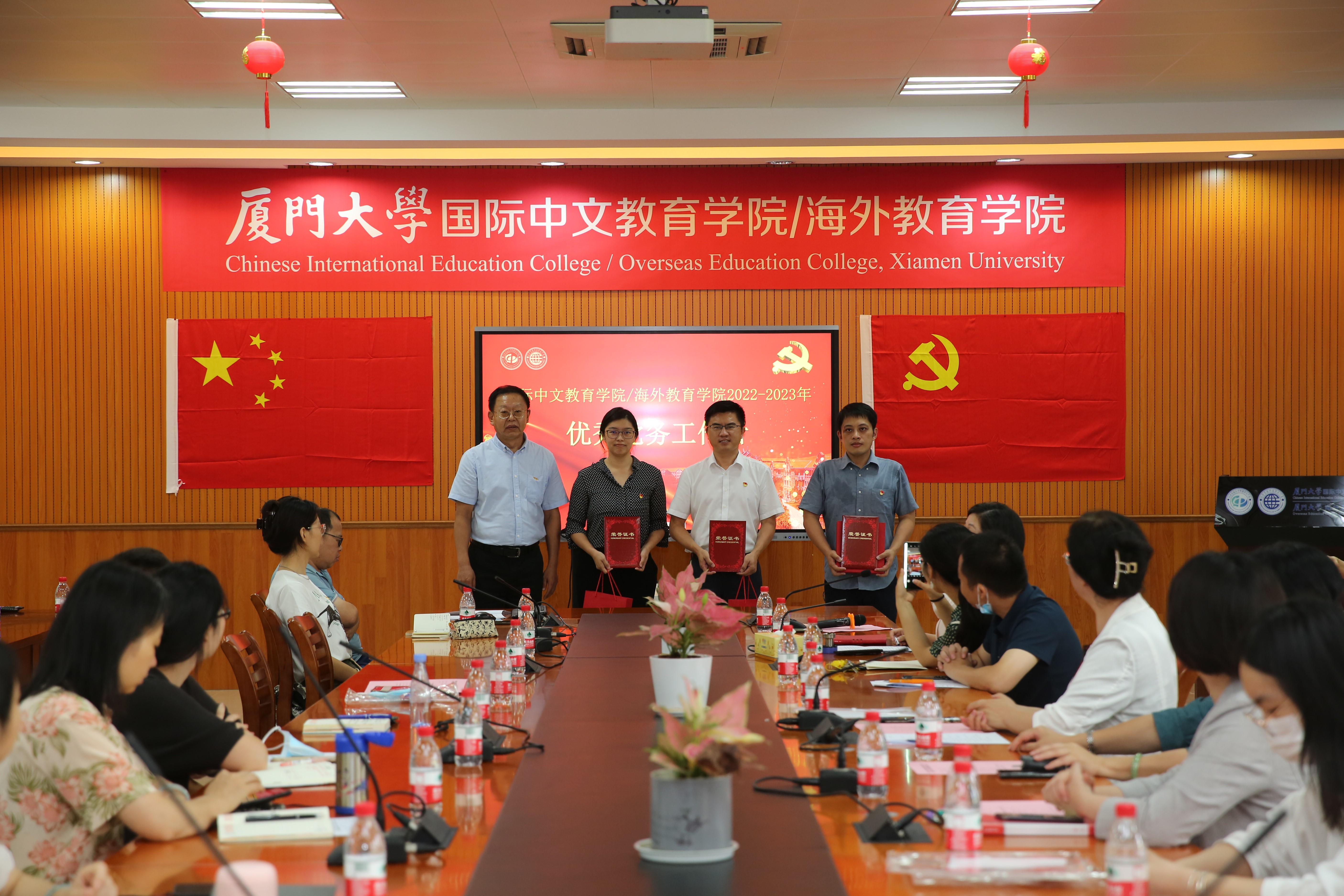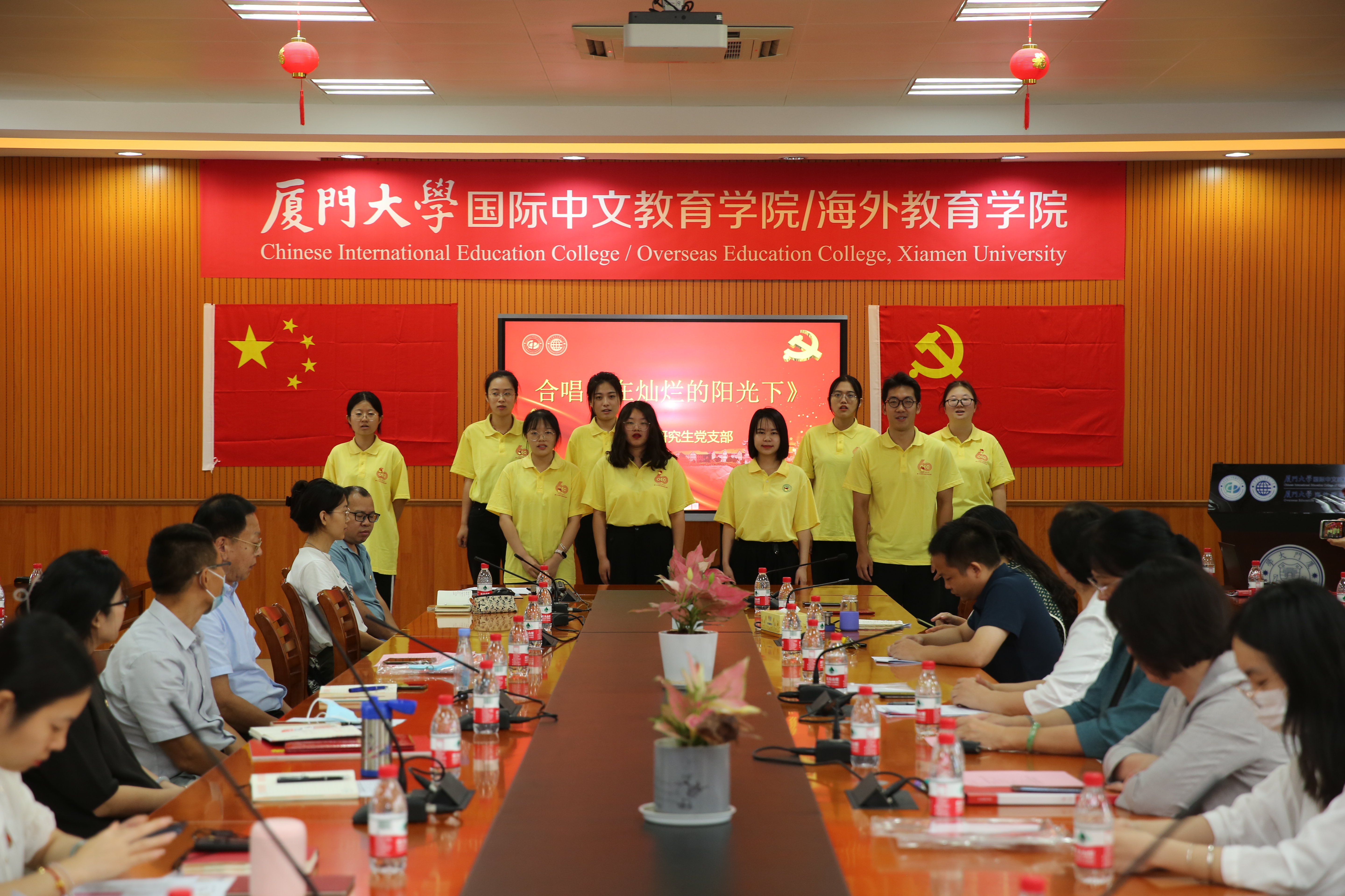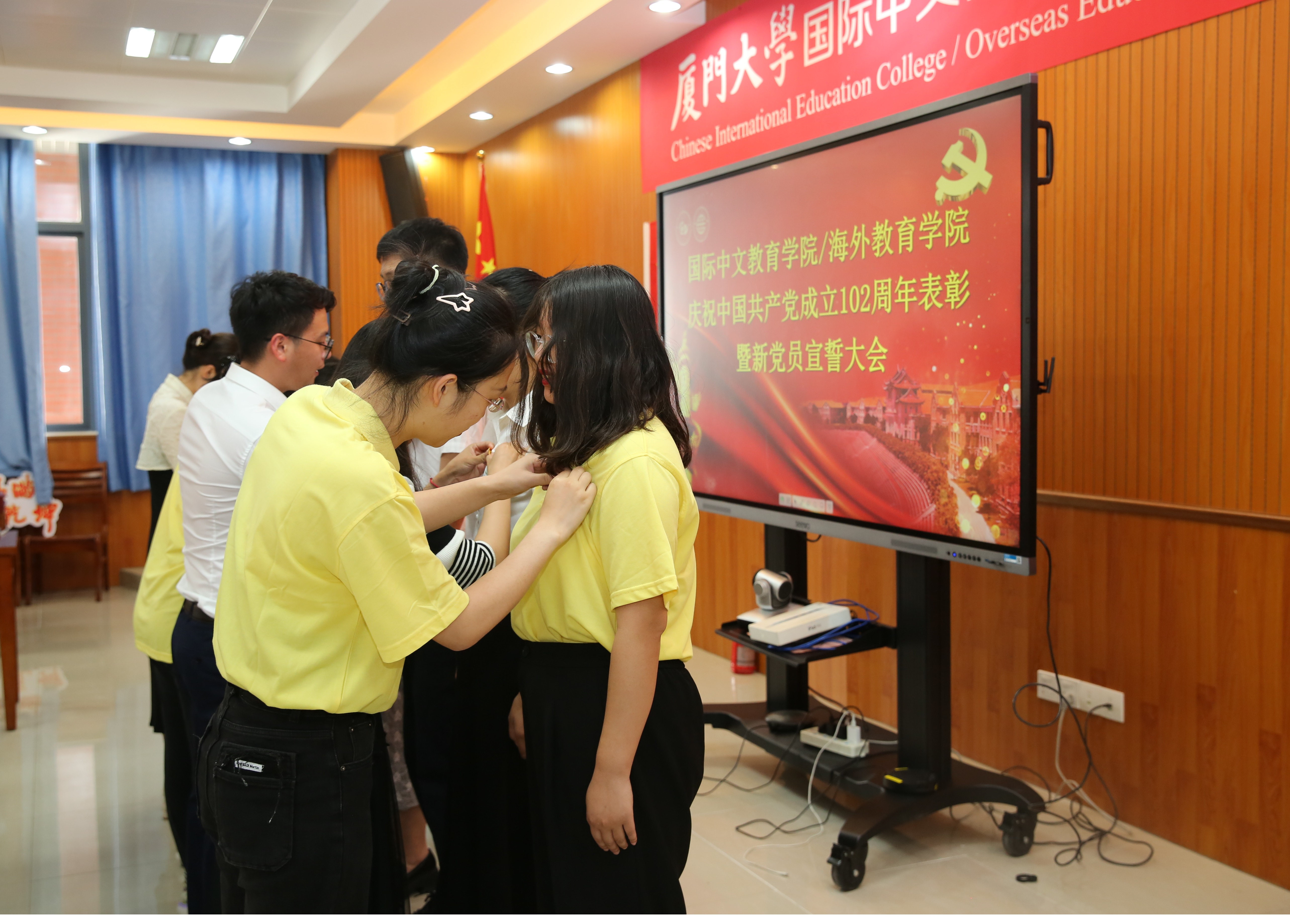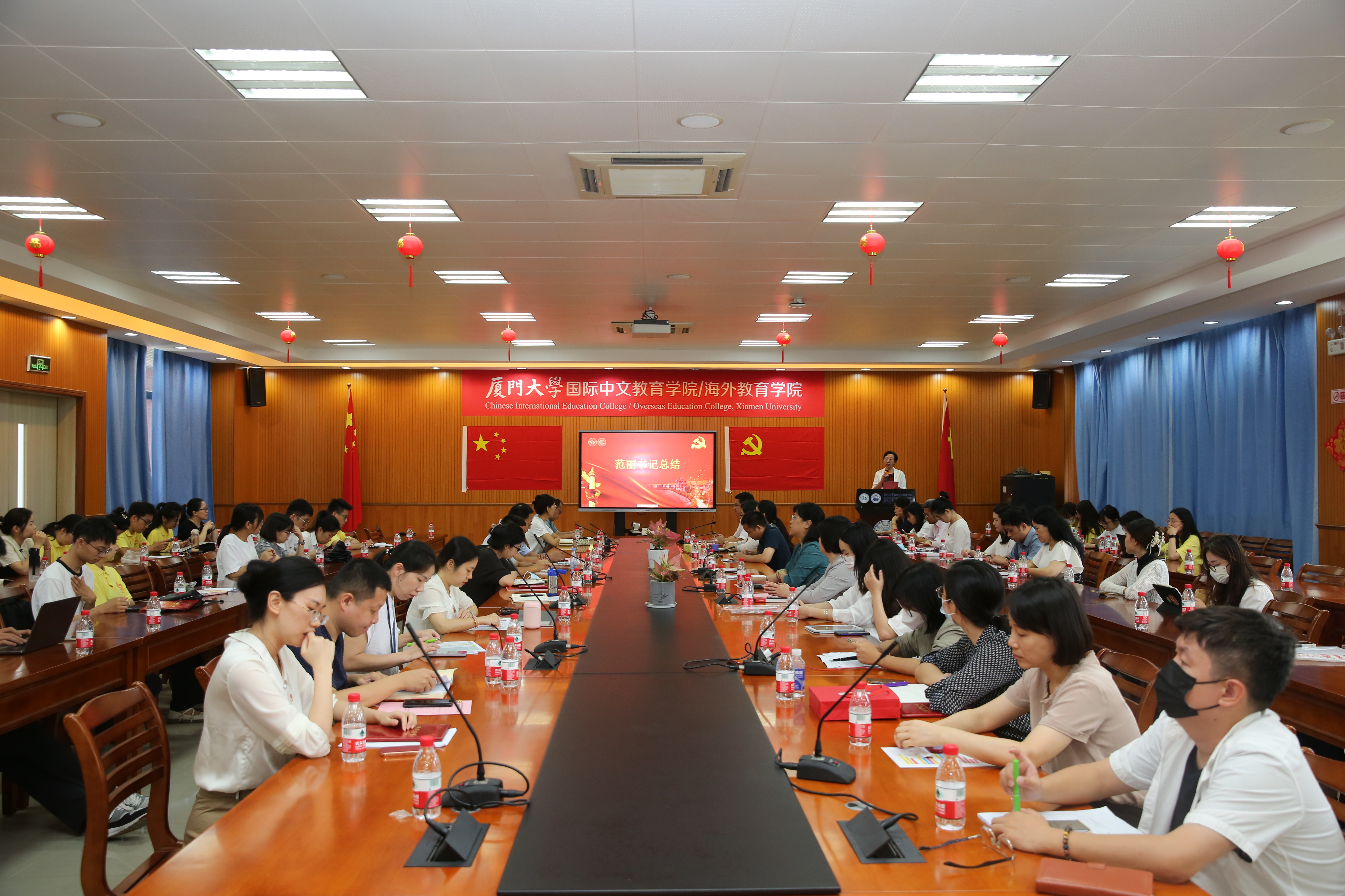 6月29日上午,国际中文教育学院/海外教育学院在坤銮楼C104会议室召开庆祝中国共产党成立102周年表彰暨新党员宣誓大会。学院党委委员,全体师生党员、入党积极分子参加了会议。会议由学院党委副书记林明华主持。