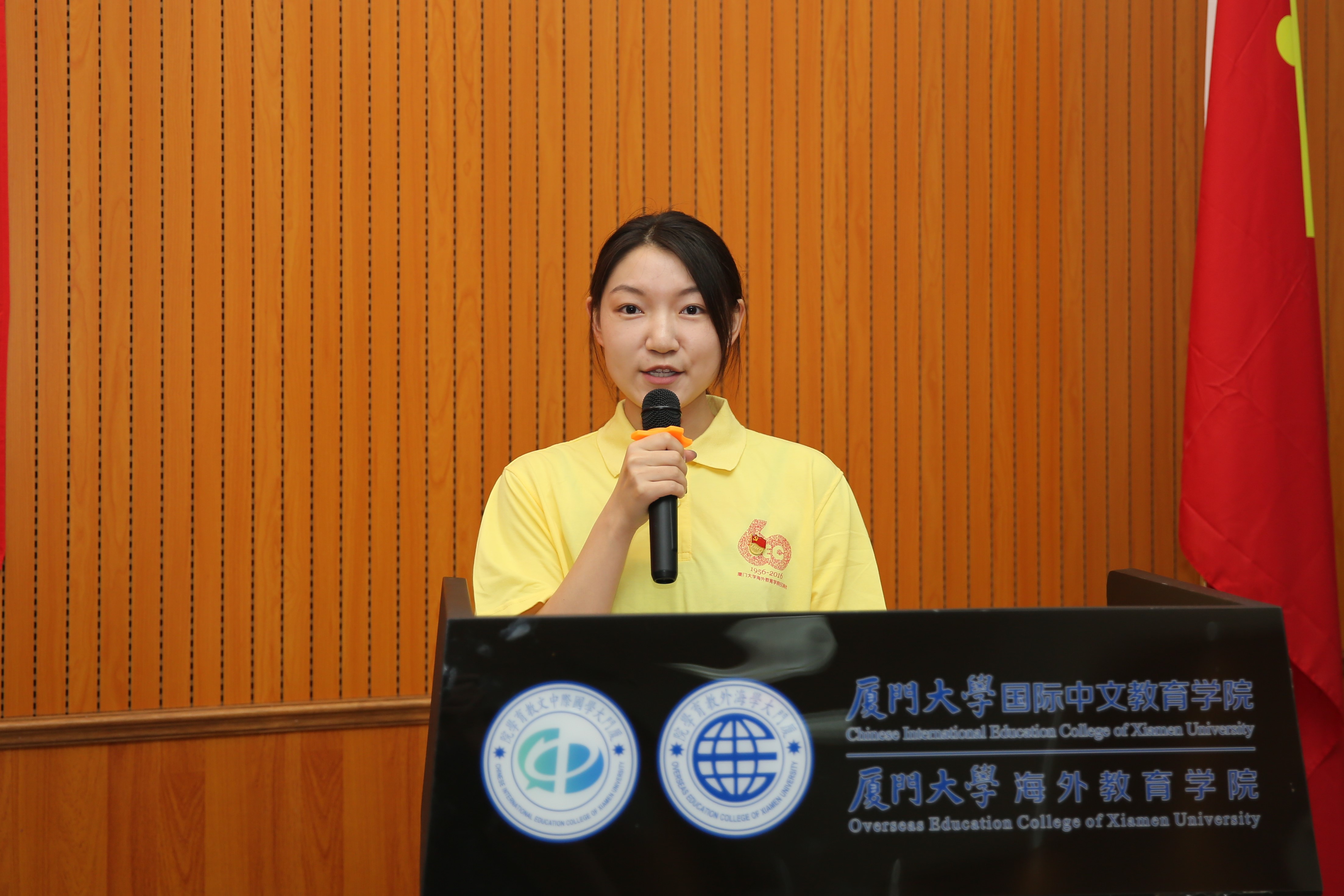 高昊楠作为新党员代表发言。她表示,作为一名新党员,在今后的学习、工作和生活中,要坚定理想信念,端正自己的入党动机;要强化宗旨意识、奉献意识;与祖国的发展同呼吸、共命运,继承和发扬党的优良革命传统,以自身行动投入到汉语国际教育事业中,为实现中华民族伟大复兴的中国梦贡献青春力量。