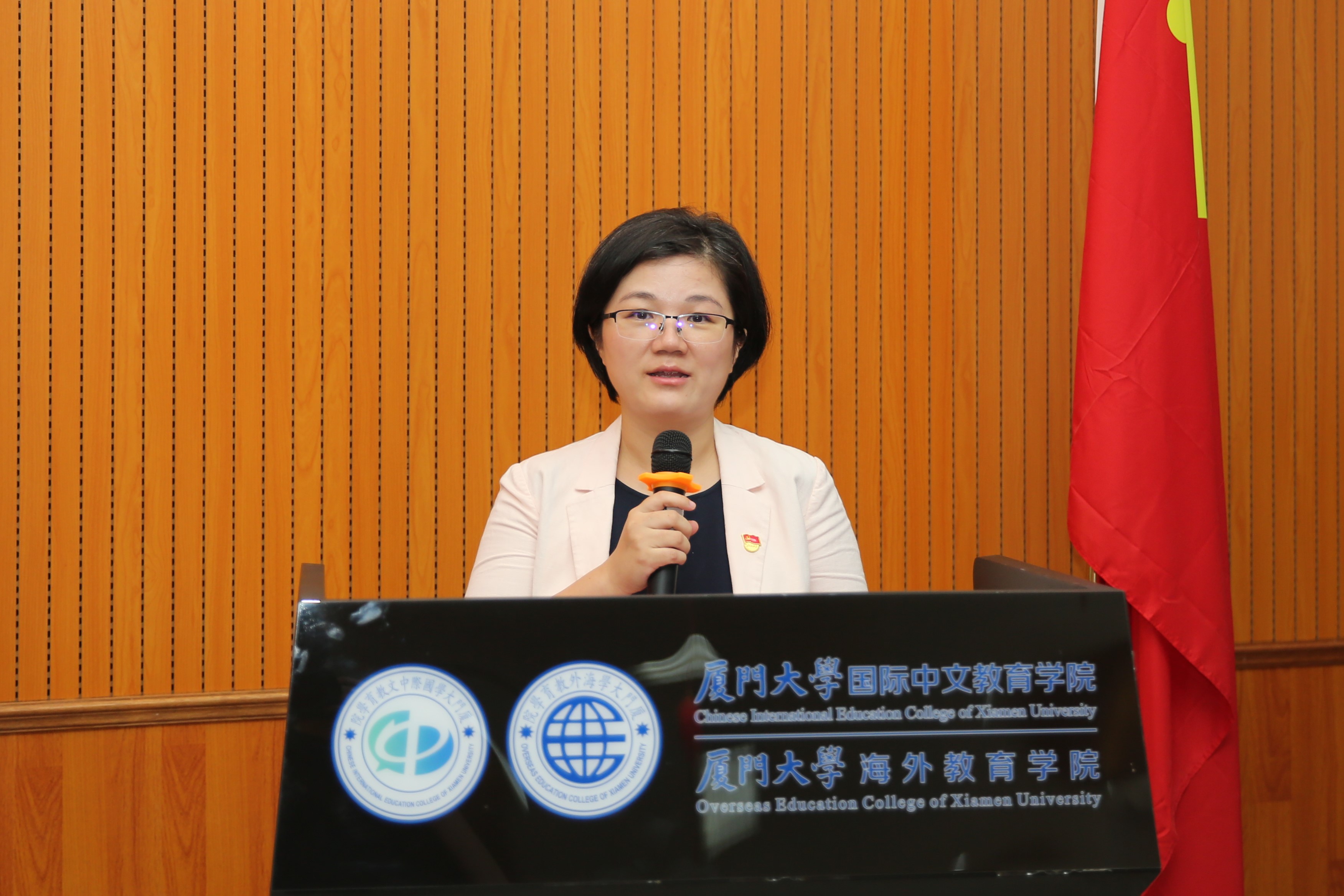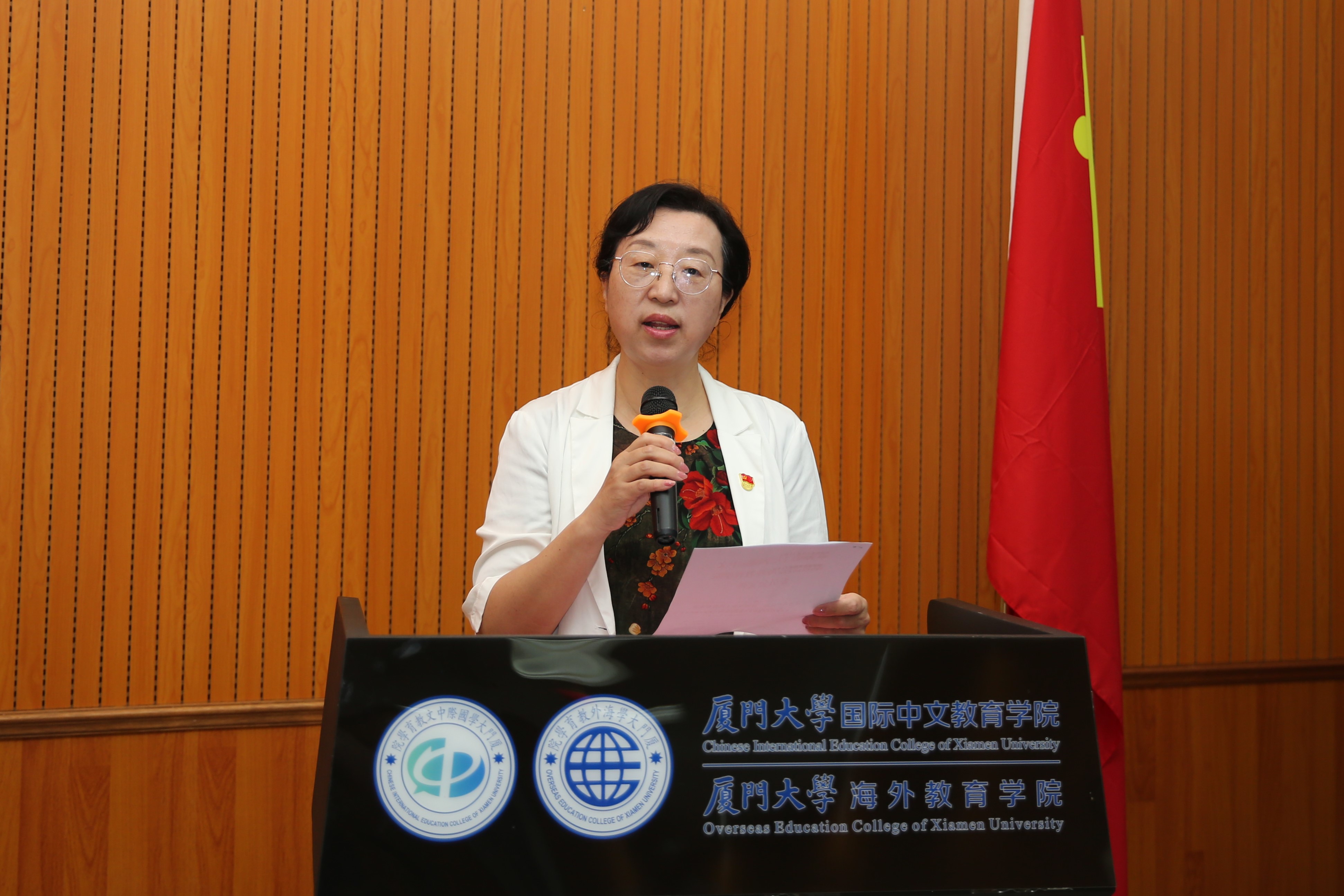 何冬梅作为优秀党员代表发言。她认为,作为一名党员,理应以理论引领实践,保存一名党员的本色,要积极参与党内工作,与同志们并肩奋斗、乐在其中,在国际教育事业中,内外联动,推动多项活动举办,促进中外交流。她表示自己将与同志们一同前行,以更加饱满的精神与热情在平凡的岗位上做出成绩,不负责任与担当。