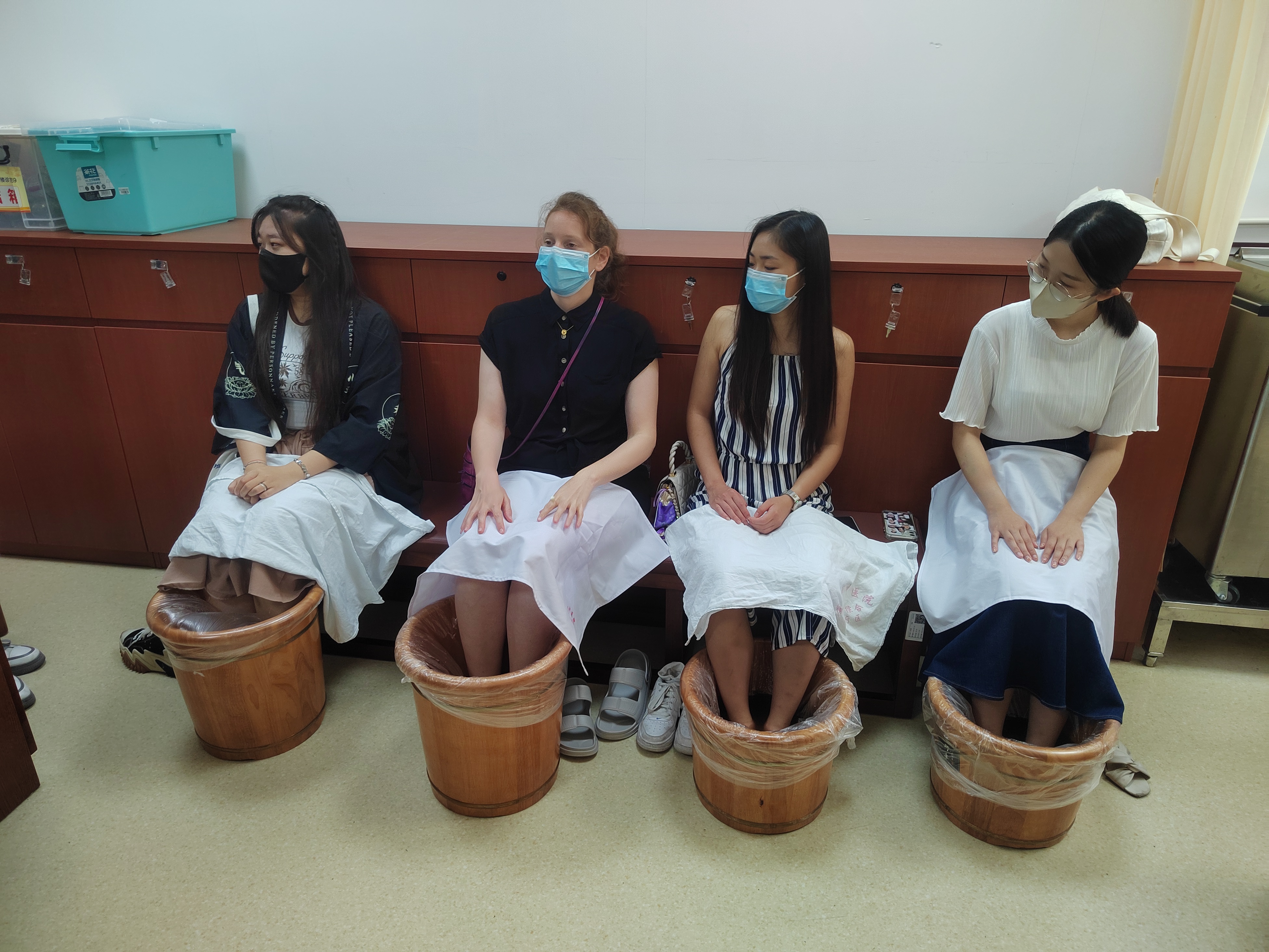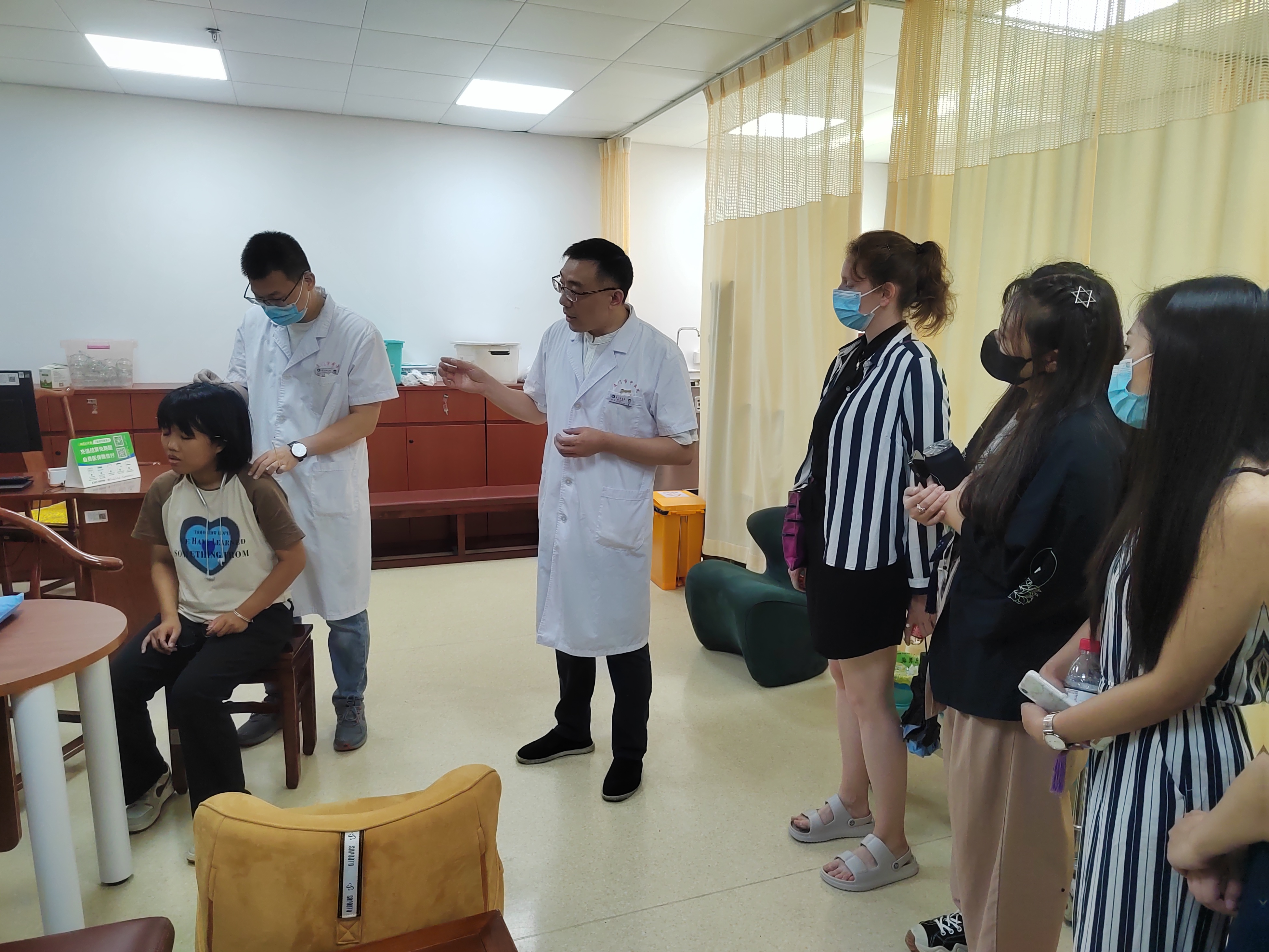 随后,国际学生们走进医院中医综合治疗区,在总院推拿科负责人雷应主任的介绍下,初探中医理疗技术的理论与实践,分别体验了飞针、中药足浴、三伏贴、艾灸等中医理疗方法。
