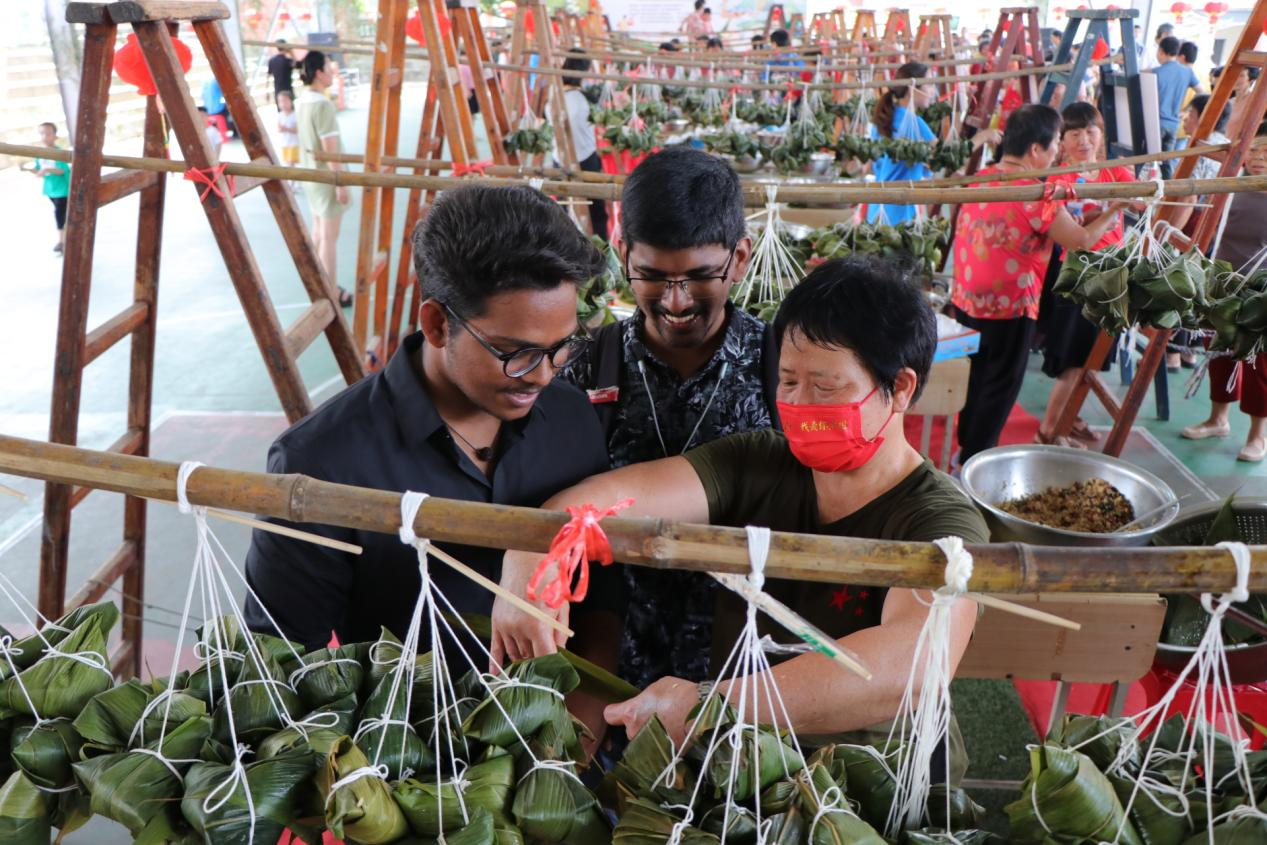 来自印尼的陈奕桦说道:“在本次活动中,我不但学会了怎么包粽子,也体验了一次全新经历!在我的家乡,如果有中国节日,我们平常会吃一顿团圆饭。但是在这次活动中,我终于体验了跟乡邻们吃饭,聊天等等。能跟叔叔阿姨和爷爷奶奶们一起吃饭,我感到非常开心!”来自印度的何知书则表示:“作为一名医学生,很少有机会到社区交流。今天的表演很精彩,与村民互动很开心,这次的活动非常有趣,希望还有机会体验更多活动!”