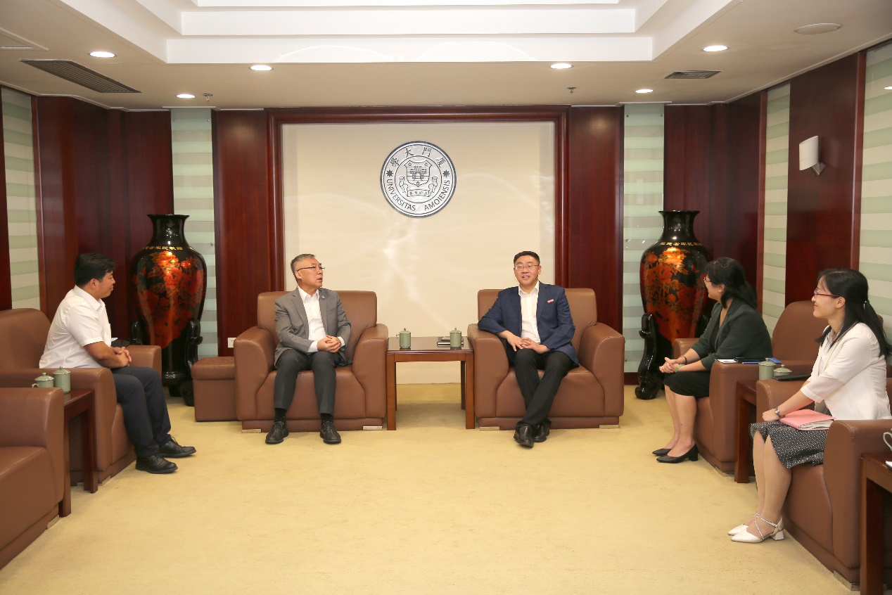 方颖对刘凤山一行的首次访问表示欢迎,并向来宾介绍了厦门大学开放办学的历史。他指出,在厦门大学百年办学历程中,始终将国际化办学作为创建一流大学的必由之路。早在1956年,厦门大学就设立了中国高校第一个华侨函授部,是中国最早开展海外华文教育的机构之一。截至目前,厦门大学已在全球13个国家建立了15所孔子学院,并与特拉华州立大学合作建设中国语言文化研究中心(以下简称“中心”)。他希望,未来该中心能够依托厦门大学的学科资源,在为特拉华州立大学以及所在州中文沉浸式教学项目提供语言和文化课程服务的同时,为校际合作和中美人文交流创造友好共赢的局面。