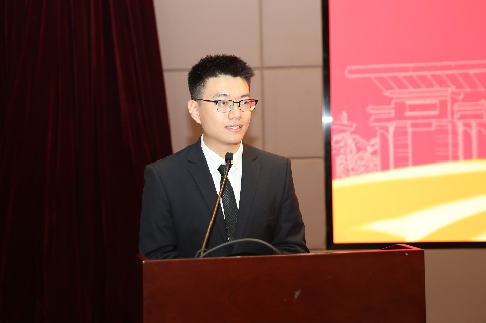 孙昊泽作为在校生研究生代表发言。他谈到,在过去一年里收获了知识、锻炼了能力,深入了对厦大和对学院的理解。以自己的学生工作为例,鼓励大家在学院的舞台上施展自己的才华。孙昊泽鼓励新生: 勇敢的人先享受世界,愿新同学脚踏实地,躬行不辍。