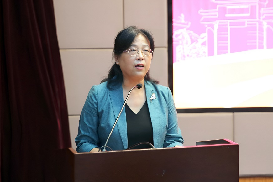 吴琳老师副教授作为教师代表发言。她回顾了自己在学院工作的20年经历,一路走来,教学相长,感受到同学们的点滴进步,她讲到希望来到这里的每个人都有欢笑、有增益。并提出希望同学们珍惜时光,一步一个脚印地踏入学术殿堂。