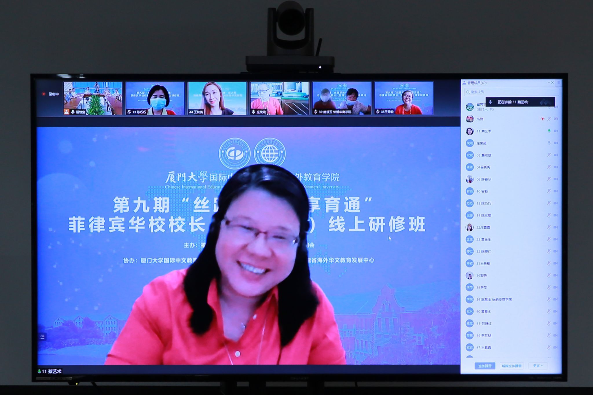 此次研修是专门面向菲律宾华校管理人员开展的线上培训,也是华校在疫情期间转变教育形式的一次有益尝试和探索。此次培训为期18天,来自菲律宾29所学校的50余名华校校长(管理人员)参加。菲律宾华文教育120多年的发展与厦门大学新百年征程交相辉映,学员们共处一个云端,在知识更迭中享受着“永葆青春”的秘诀。从最年轻的23岁新生代,到85岁仍放不下华教事业的老前辈,面对着疫情期间教学的新挑战,每一个人都抱着好学的精神,努力在自己的领域充实自己。资源共享谋发展,求同存异促共融。我们共同期待华文教育更加美好的明天。厦门大学国际中文教育学院/海外教育学院 供稿(彭涛、戚影/文 苏宏捷、彭涛/图 林琳/审核)