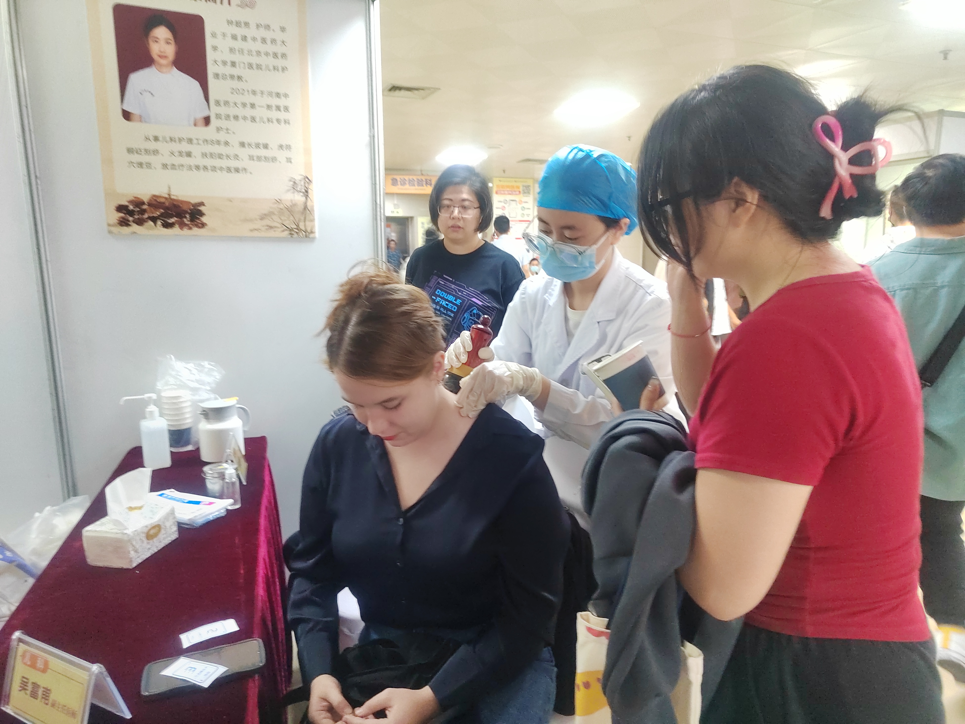 同学们在中医体验展区感受了扶阳罐、火龙罐、刮痧、中药超声雾化等中医适宜技术,结合各位医生的现场讲解,大家在深入学习和体验中了解了许多有关中医药的知识。同时大家还参加了主题为“小穴位,大健康”的科普讲座,从中了解了人体各个穴位的定位作用与平时按摩的操作手法。