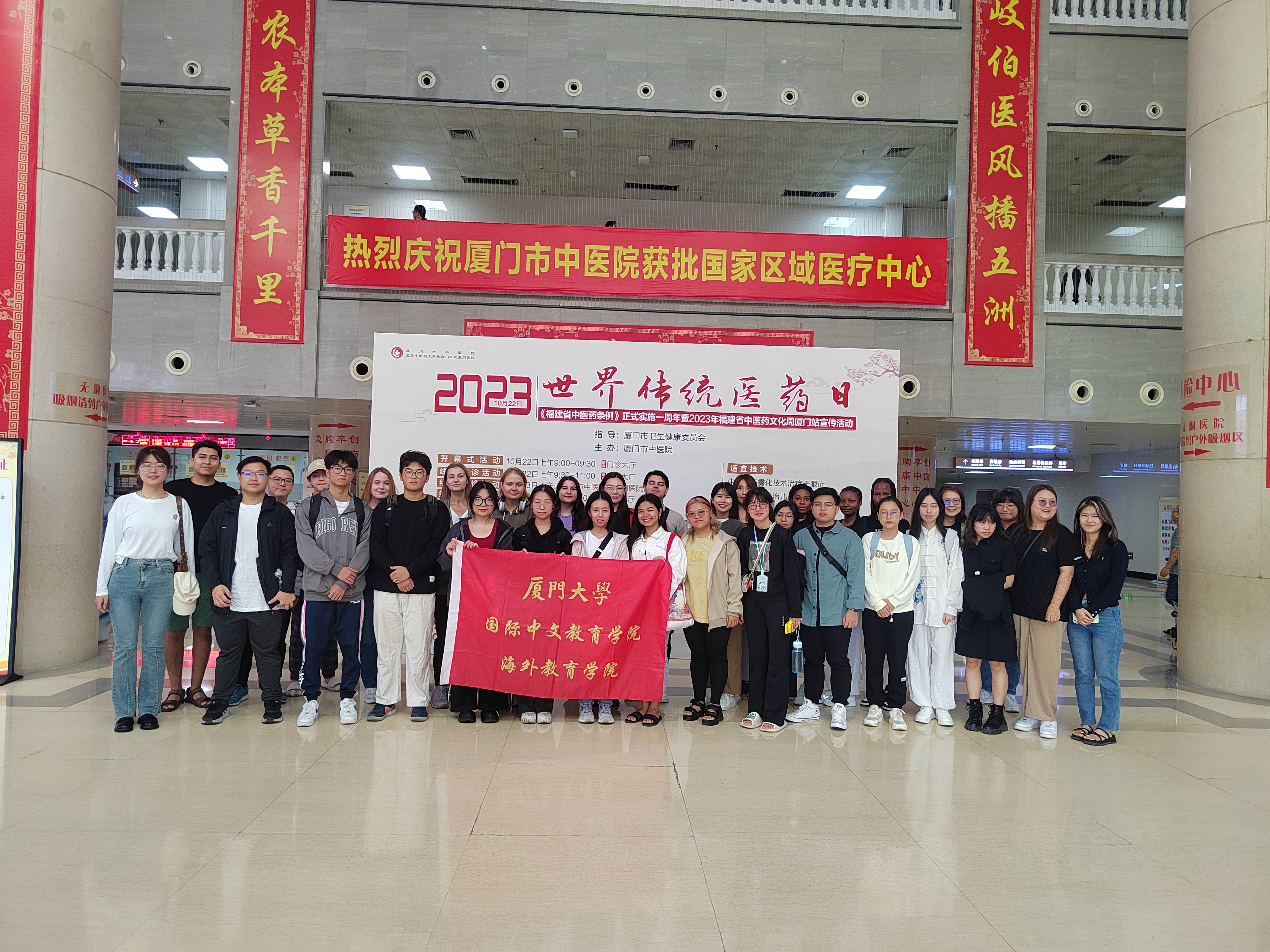 中医药是中国传统的医疗体系,包含着中华民族几千年的健康智慧及实践经验,具有悠久的历史和深厚的文化底蕴。10月22日是第32个世界传统医药日,同时正值《福建省中医药条例》正式实施一周年之际,厦门市中医院顺利举行中医药文化宣传周开幕式活动。当日上午,厦门大学国际中文教育学院/海外教育学院中外学生在辅导员带领下前往厦门市中医院参加开幕式,深入体验中医文化。